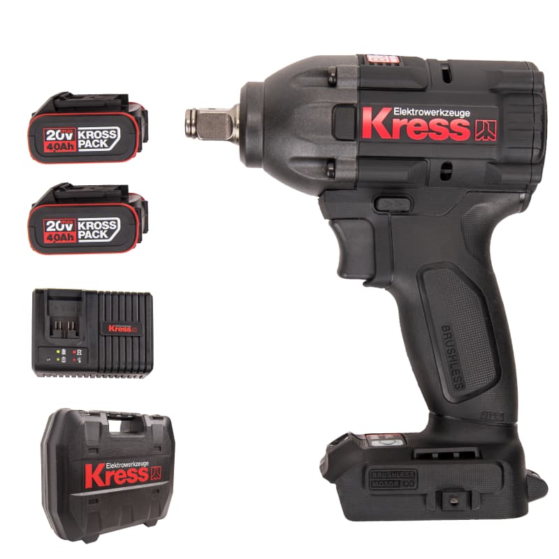 Гайковерт KRESS KU270.1; 2 аккумулятора Li-Ion емкостью 4А*ч; Зарядное устройство KRESS 20В 6A с функцией быстрой зарядки; Кейс. |