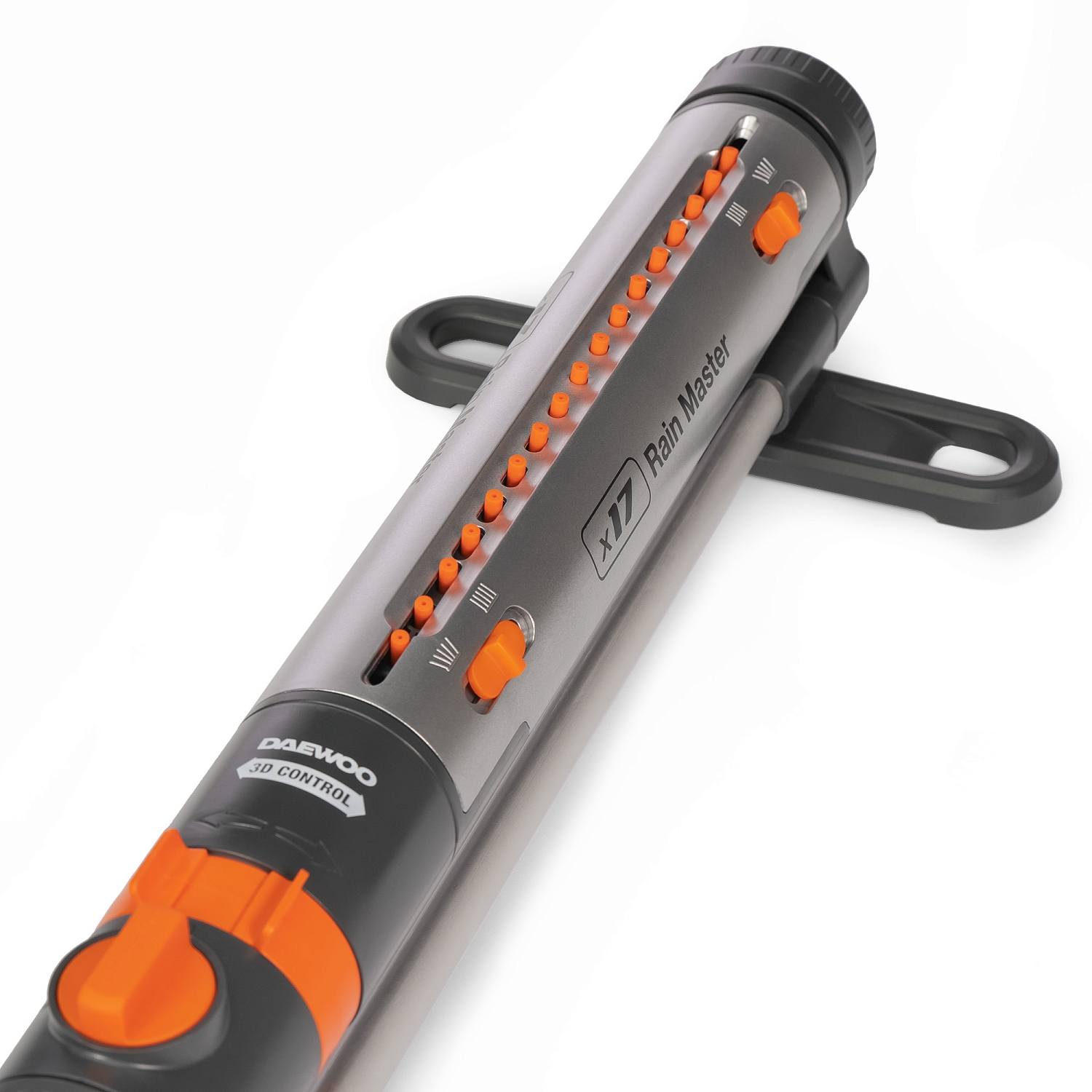 - Система 3D CONTROL. Удобные регуляторы позволяют настроить угол наклона форсунок, направление их движения и дальность струи, чтобы полить определенный сектор или заданную площадь от 90м² до 320м².