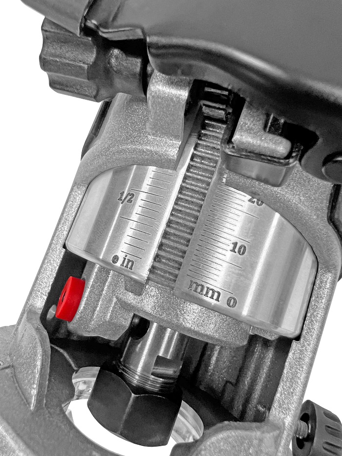 Направляющая задает расстояние от кромки заготовки до центра фрезы, кроме того она позволяет уверенно фрезеровать по радиусу (расстояние от центра окружности до центра фрезы от 70 до 221 мм).