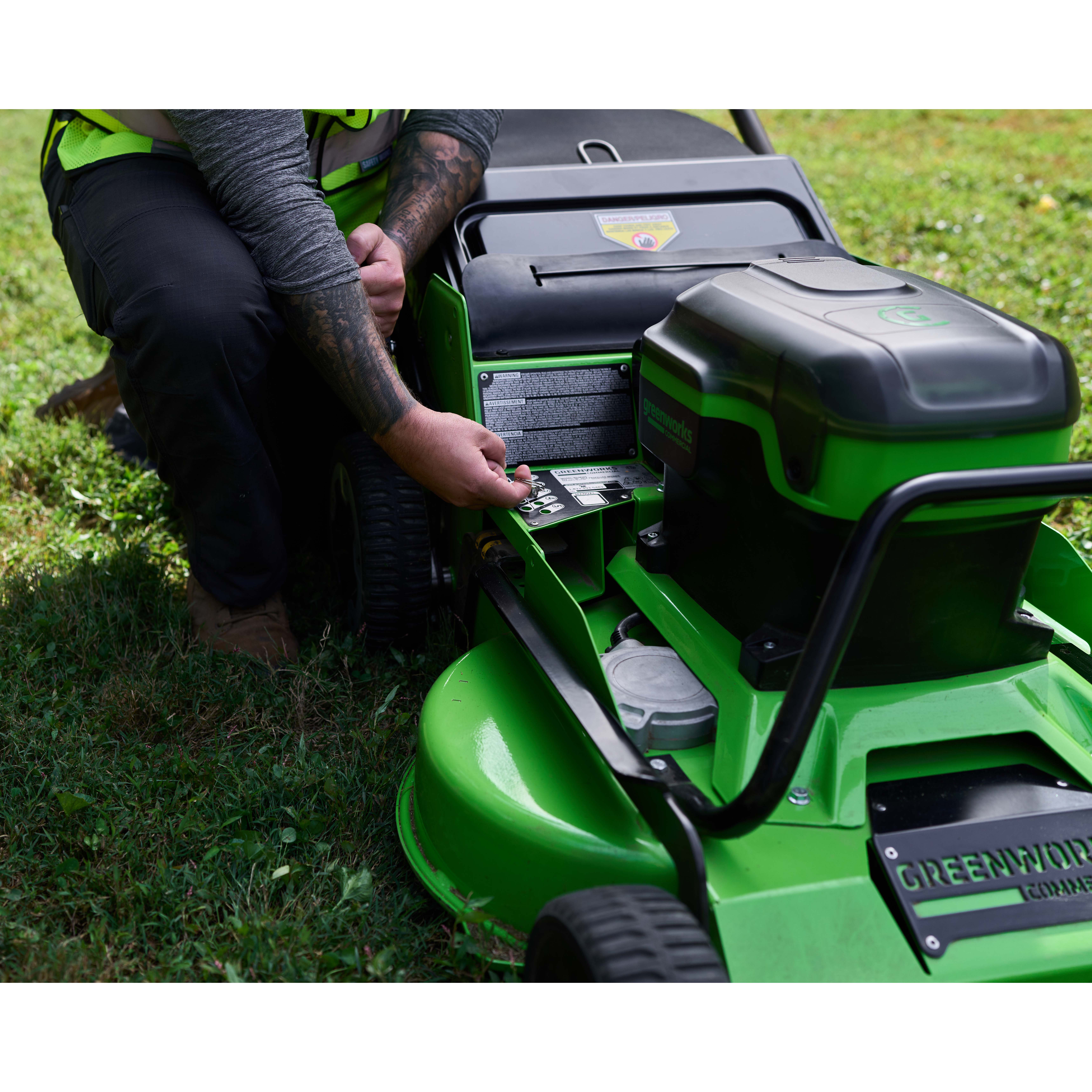 Под управлением интеллектуальной системы Greenworks Intelligent Power, все компоненты устройства: аккумуляторные батареи, двигатели привода колес, двигатели привода ножей и электронные контроллеры работают как единое целое.
