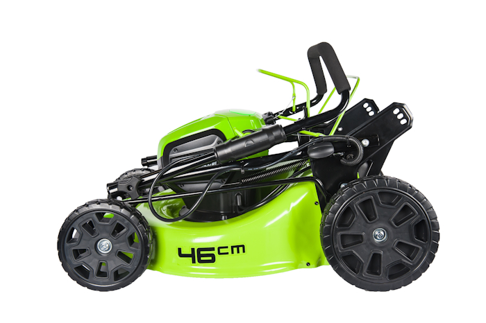 Газонокосилка аккумуляторная Greenworks, 60V, 46 см, самоходная, бесщеточная, без АКБ и ЗУ из полупрофессиональной линейки 60V. Интегрированная система экономии заряда батареи - ECO-Boost регулирует обороты двигателя в автоматическом режиме в зависимости от нагрузки на нож косилки. Для долговечной службы дека косилки, шириною 46 см, сделана из стали, а корпус из специального "мягкого" ABS пластика.