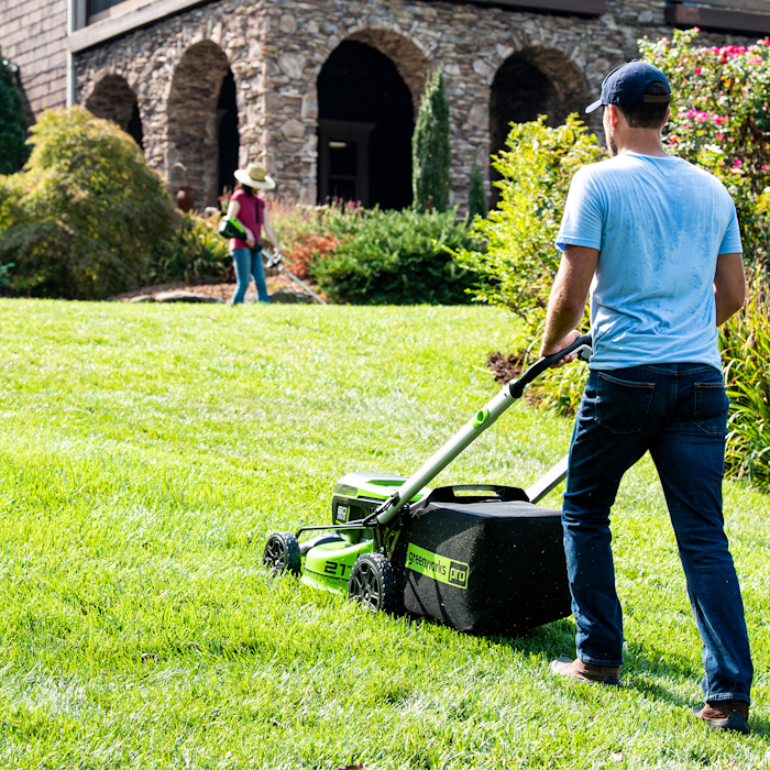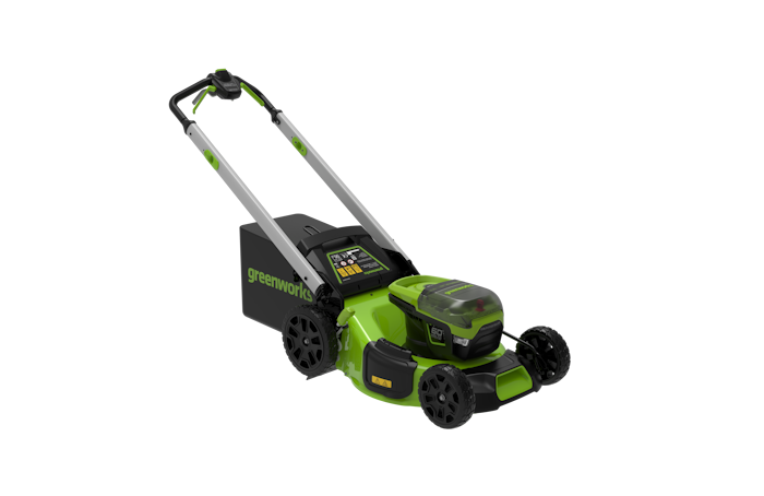 Газонокосилка аккумуляторная Greenworks, 60V, 51 см, самоходная, бесщеточная, без АКБ и ЗУ из линейки полупрофессиональных устройств 60V. Скорость движения регулируется в диапазоне 2,5-4,9 км/ч. В батарейный отсек устанавливаются сразу два аккумулятора. После разрядки первого происходит автоматическое переключение на второй. Но, в то же время, установка сразу 2-х батарей не обязательна.