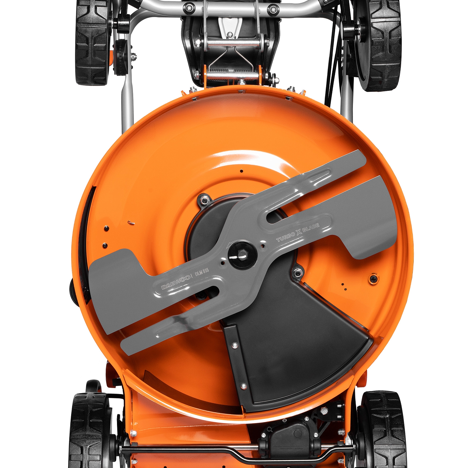 Турбонож TURBO X BLADE. Многоуровневая форма и увеличенные закрылки ножа обеспечивают идеальный срез с многократным измельчением. Это позволяет увеличить плотность заполнения травосборника на 25% и использовать один нож как для сбора, так и для мульчирования.
