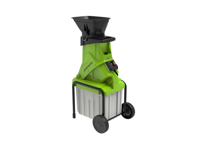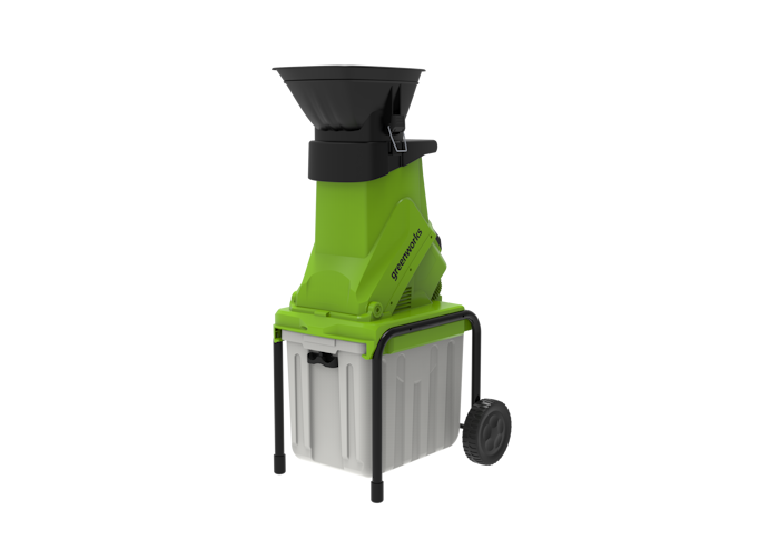 Измельчитель садовый электрический Greenworks, 2500 Вт с контейнером предназначен для утилизации растительных отходов, например, веток, стеблей (кроме травы).