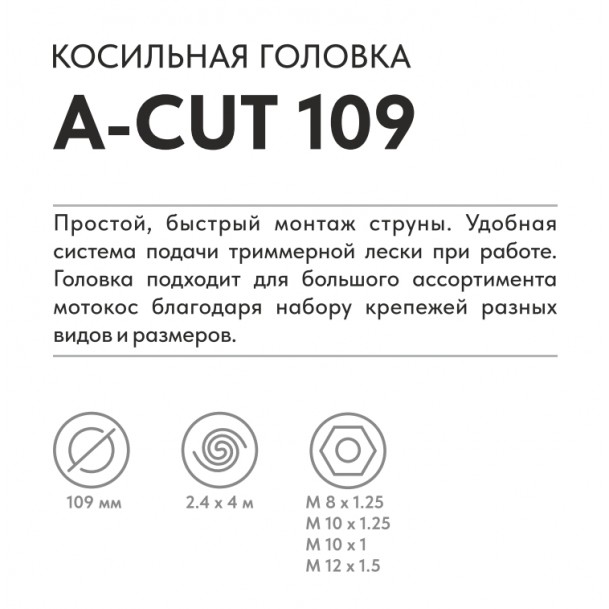 Косильная головка A-Cut 109 (CB242 CB252 CB352 CB532 CA40 (M8*1,25 M10*1.25 L) VILLARTEC 2600109001