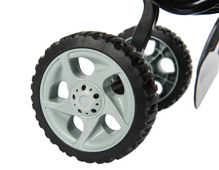 Максимальная глубина обработки составляет 20 см, а ширина 25 см. Для рыхления культиватор оснащен 4-мя фрезами-ножами. Максимальная скорость вращения фрез = 200 об/мин. Для удобства использования модель оснащена опорными колесами, а благодаря складной ручке он не займет много места при хранении.