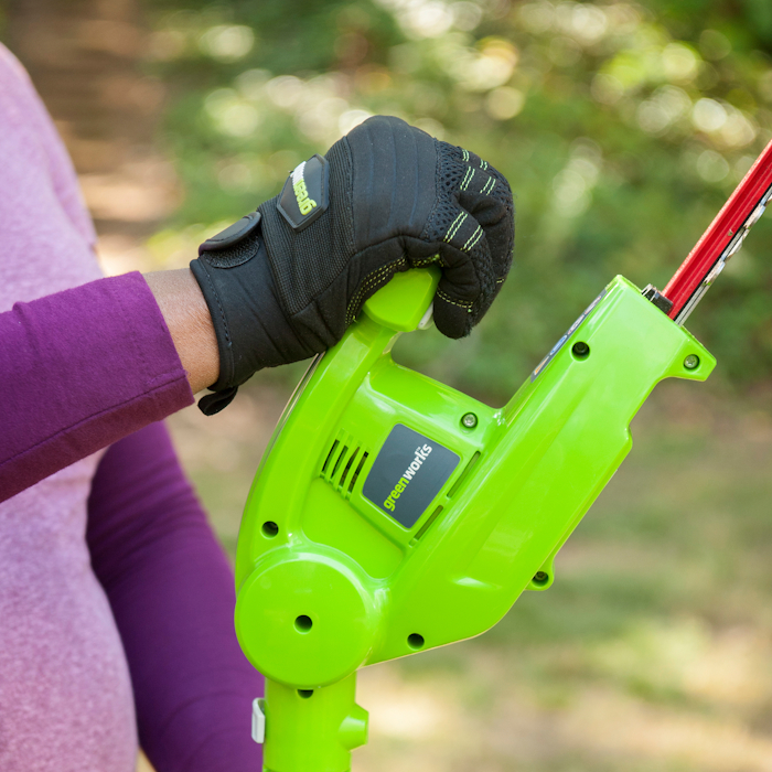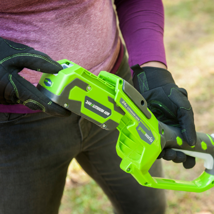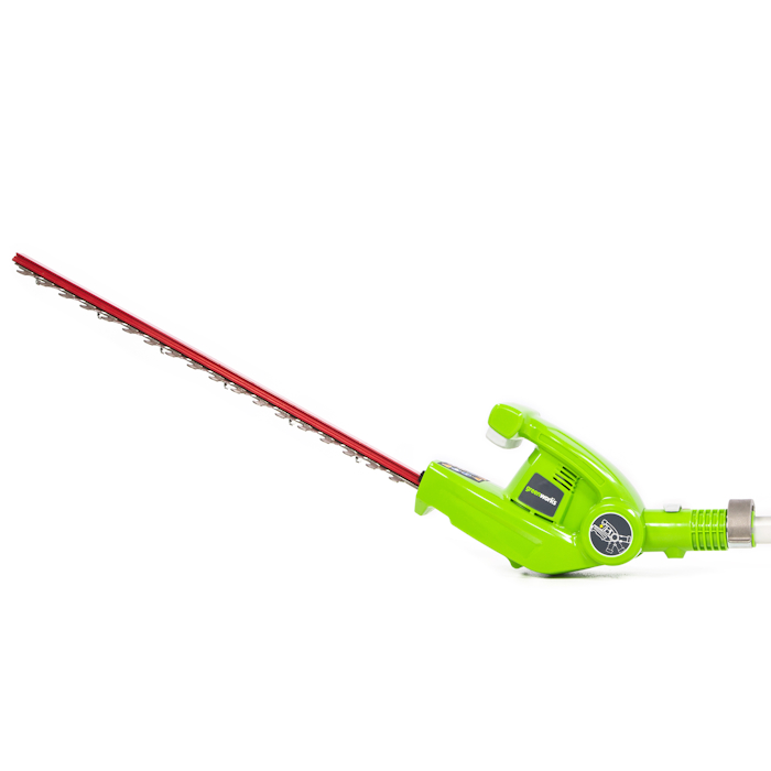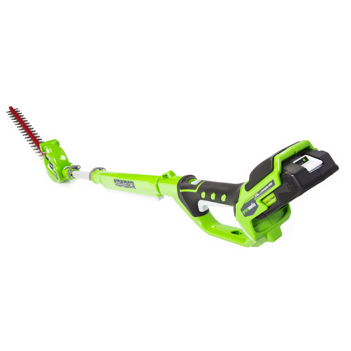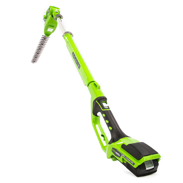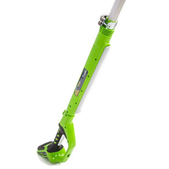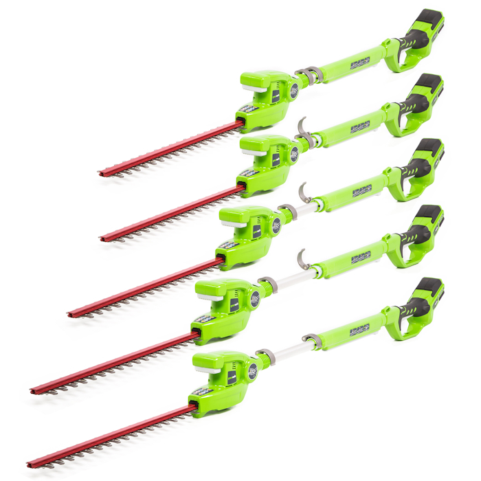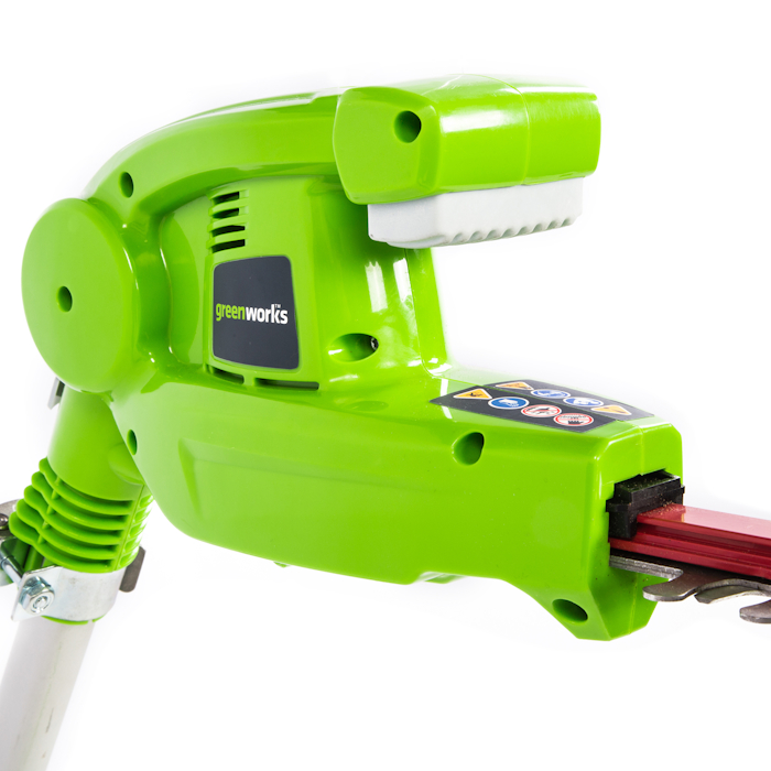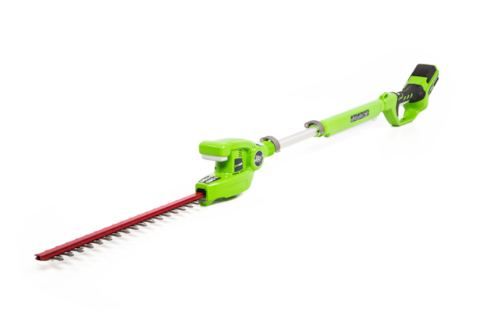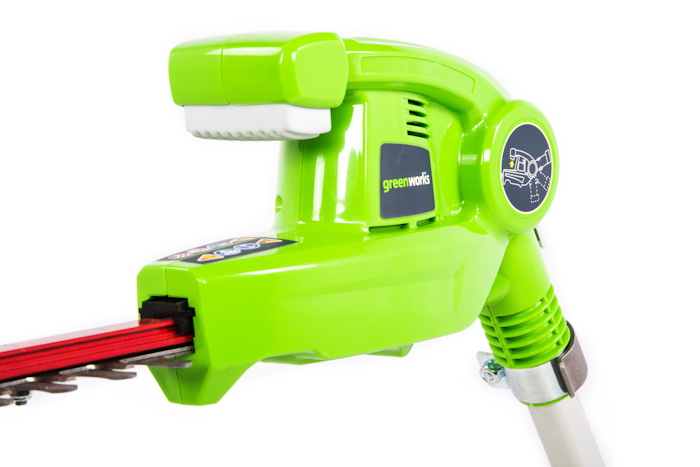 Кусторез аккумуляторный Greenworks 24V, 51см - альтернатива электрическому садовому кусторезу или, как их еще называют - садовым электро ножницам. Он легко справится с формированием крон деревьев, стрижкой и подрезкой кустарника, живой изгороди и других декоративных растений. Основное преимущество модели - многопозиционное лезвие (7 положений). Это делает вашу работу по уходу за деревьям проще и позволяет выполнять подрезку под разным углом. Также основной особенностью модели является составная штанга с максимальной длиной устройства 240 см.