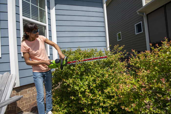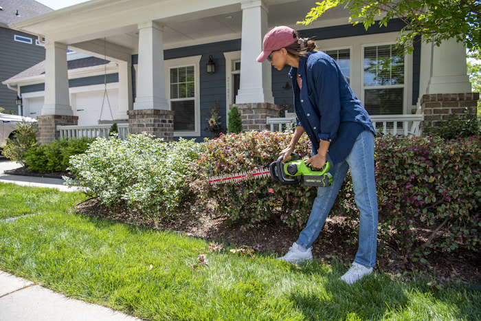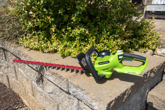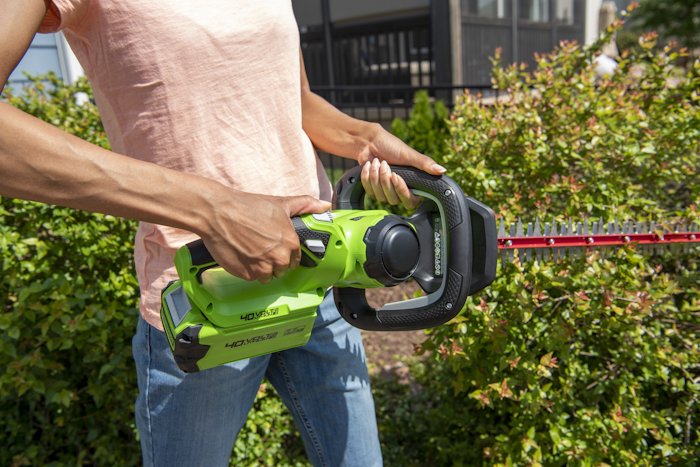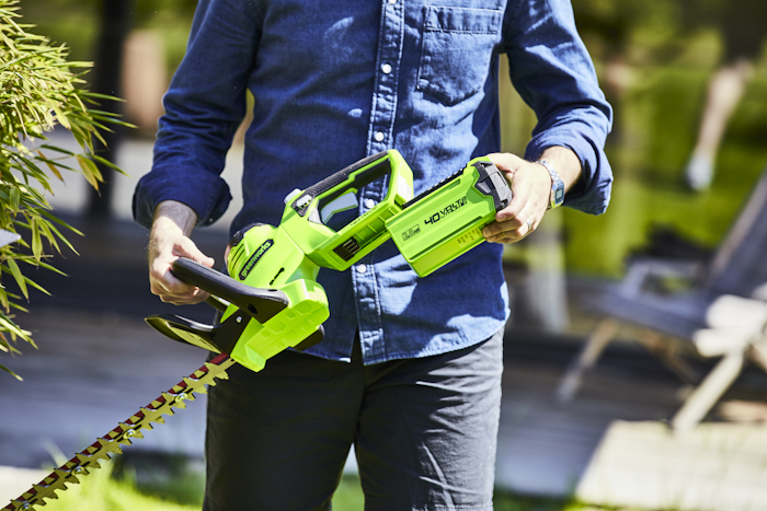 Кусторез аккумуляторный Greenworks 40V, 61см с легкостью справится с подрезкой деревьев, кустарника или живой изгороди.