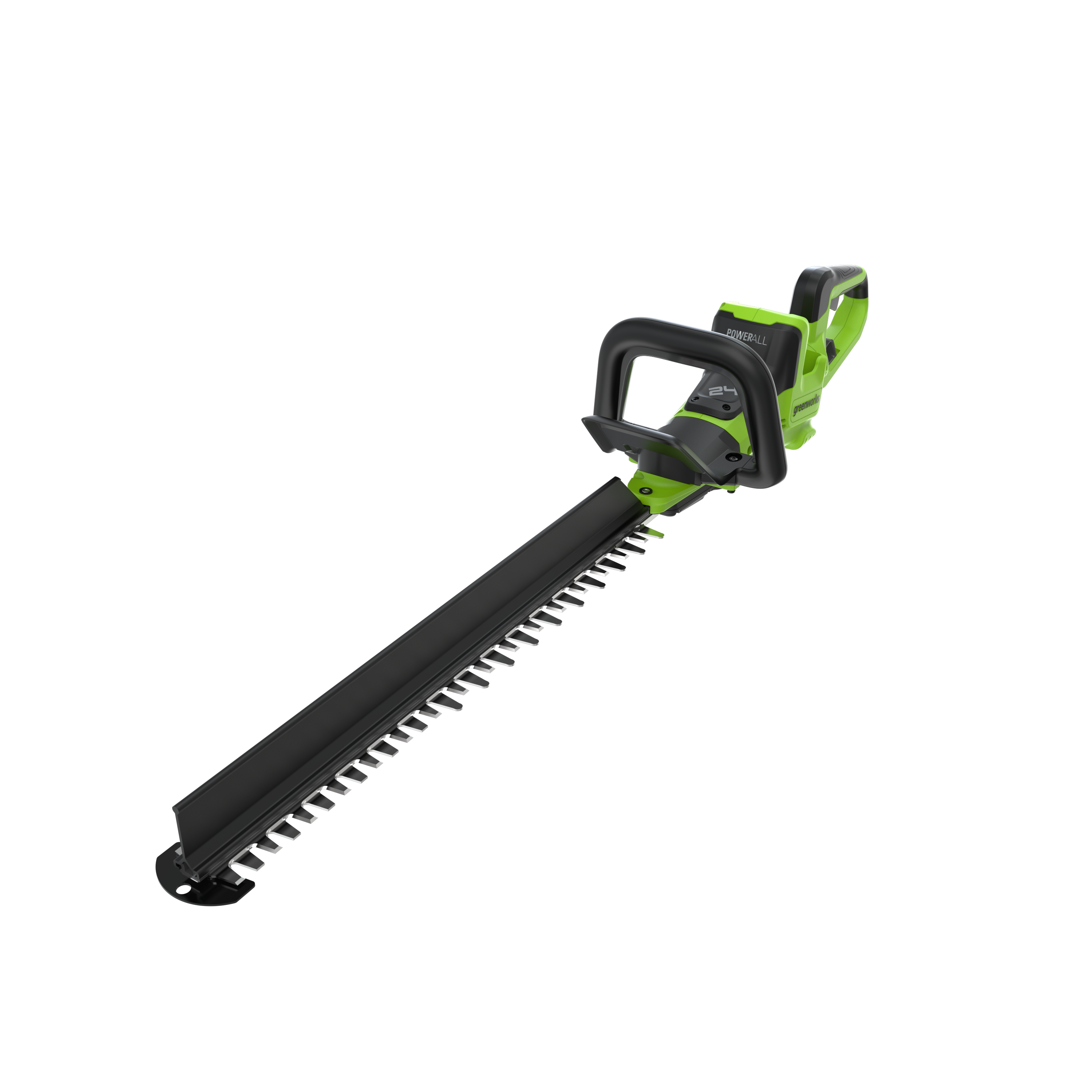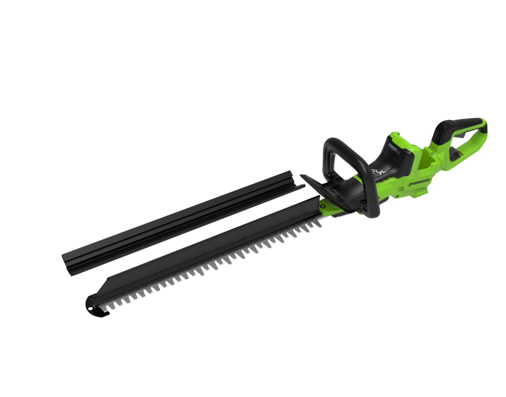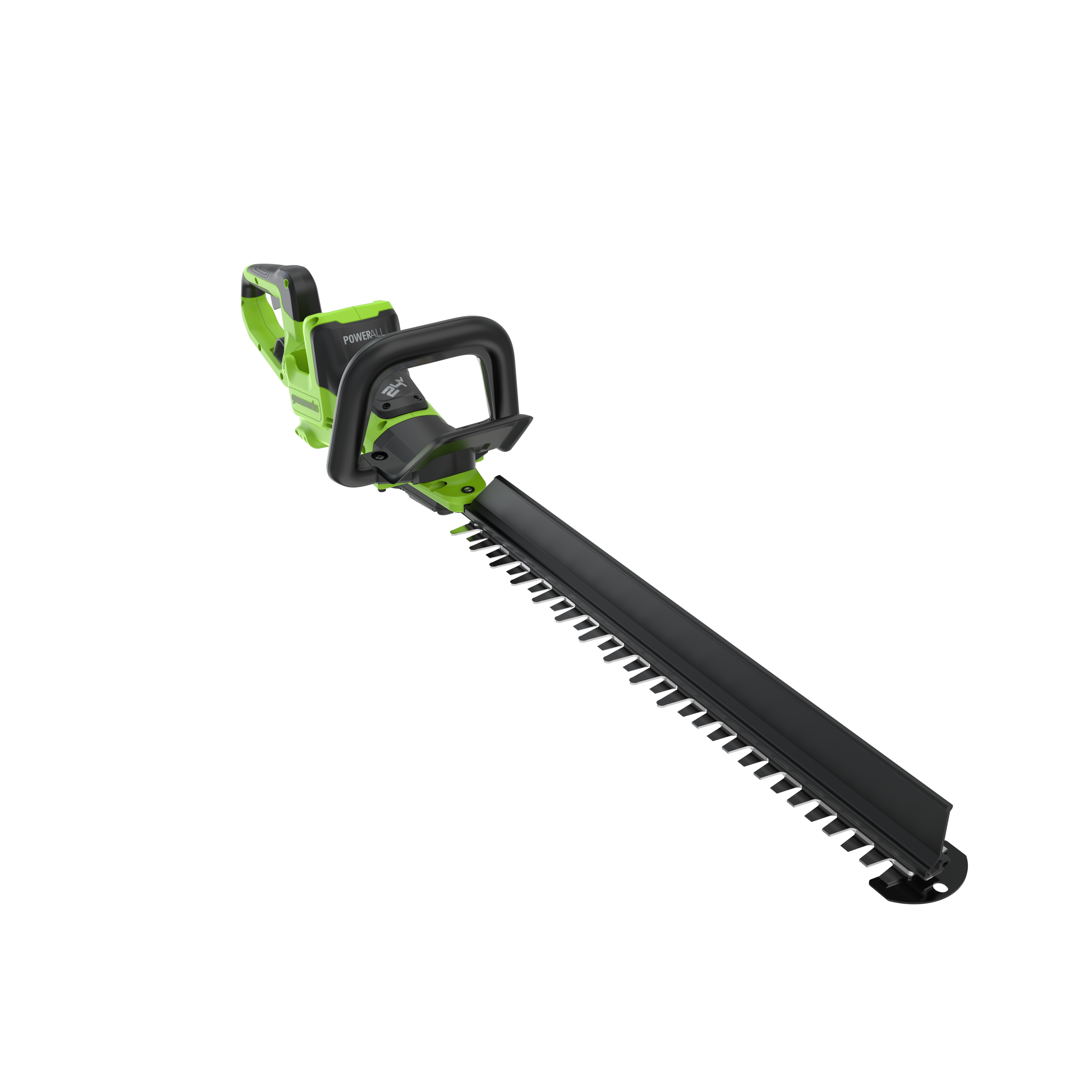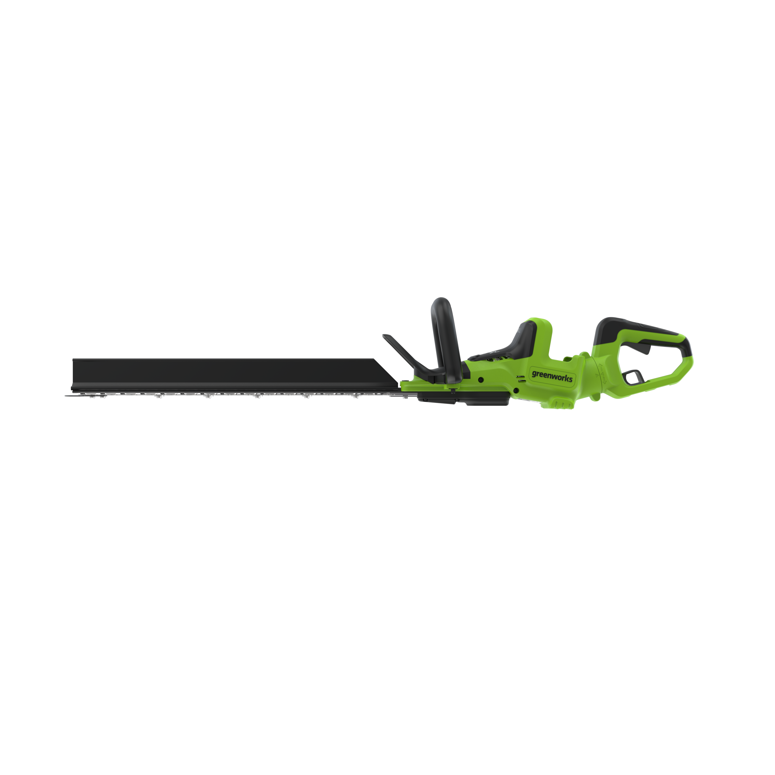 Кусторез аккумуляторный бесщеточный Greenworks GD24HT611, 24V, 61см (арт.2208507) - инструмент для ухода за живыми изгородями и кустарниками. Нож длиной 61 см с частотой 4000 ходов/минуту обеспечивает высокую производительность, а расстояние между зубцами 28 мм позволяет эффективно срезать ветви разной толщины.