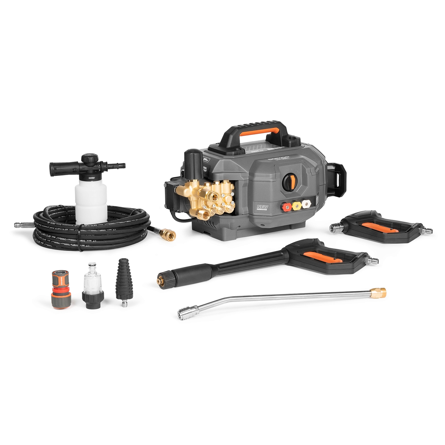 Мойка высокого давления, пистолет, дополнительный, короткий пистолет, шланг высокого давления, насадка - копье - 1 шт., насадка на пистолет грязевая фреза - 1 шт., набор быстросъемных насадок-форсунок, фильтр очистки воды, быстросъемный коннектор, пеногенератор , руководство по эксплуатации, гарантийный талон, коробка. |