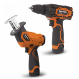 Дрель-шуруповерт аккумуляторная Daewoo DAA 1210Li, сабельная пила аккумуляторная Daewoo DGS 1210Li, аккумулятор 1,5 А/ч - 2 шт., зарядное устройство, пилка по металлу - 1 шт., пилка по дереву - 1 шт., инструкция, сумка, коробка. |