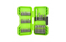 Биты 25 мм, из стали S2, 21 шт: PH1х1 / PH2x7 / PH3х1 / PZ1х1 / PZ2x3 / PZ3х1 T20x2 / T25х1 / SL4х1 / SL5х1 / H4х1 / H5х1 Биты 50 мм, с торсионной зоной, из стали S2, 13 шт: PH1х1 / PH2x4 / PH3х1 PZ1х1 / PZ2x2 / PZ3х1 / T20х1 / T25x2 Торцевые головки с шестигранным хвостовиком 1/4, 3 шт: 6 / 8 / 10 мм; Адаптер для торцевых головок квадрат 1/4, 1 шт; Адаптер для торцевых головок квадрат 3/8, 1 шт; Магнитный держатель бит, 1 шт Яркий и прочный кейс для хранения и перевозки, 1 шт. |