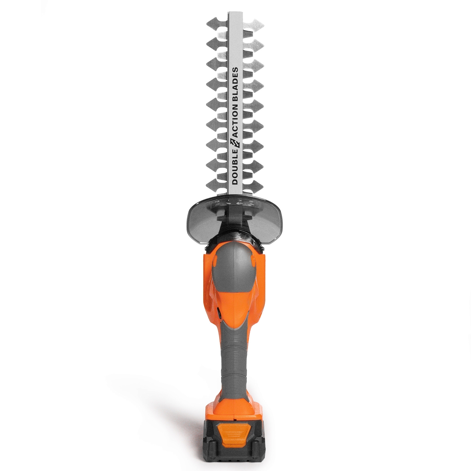 Ножницы-кусторез, нож для кустарников, нож для газона, защитный щиток, ковш для травы, колеса для перемещения, рукоятка телескопическая, ЗУ, АКБ 2,0 Ач - 1 шт., руководство по эксплуатации, коробка. |