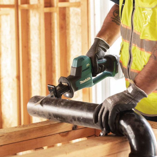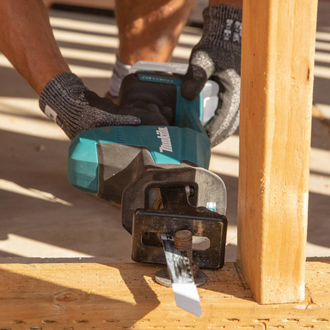 Аккумуляторная сабельная пила Makita DJR189Z предназначена для прямолинейного и фигурного реза. Подходит для разных материалов - от гипсоволокна и гипсокартона до древесины, пенобетона и стали.