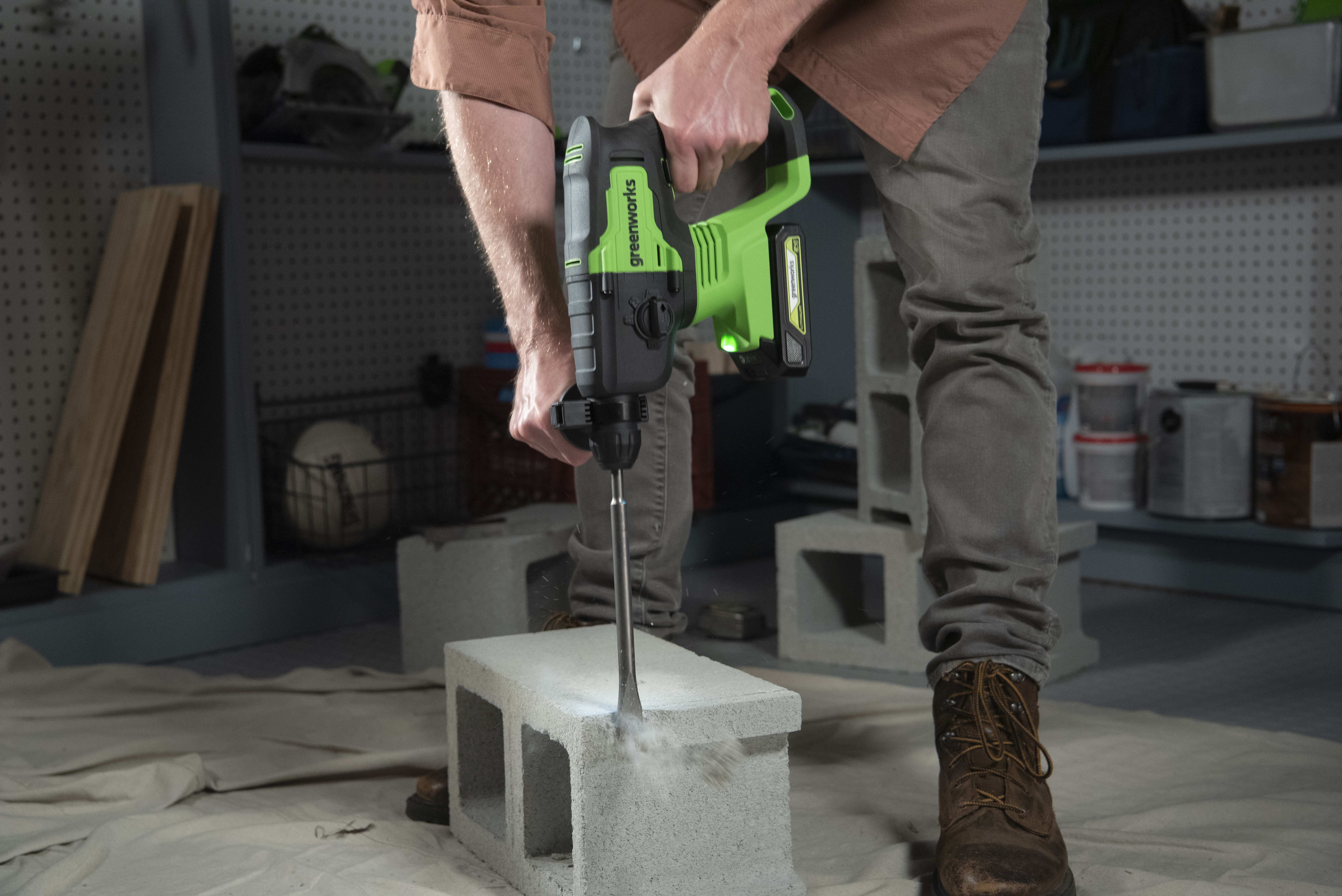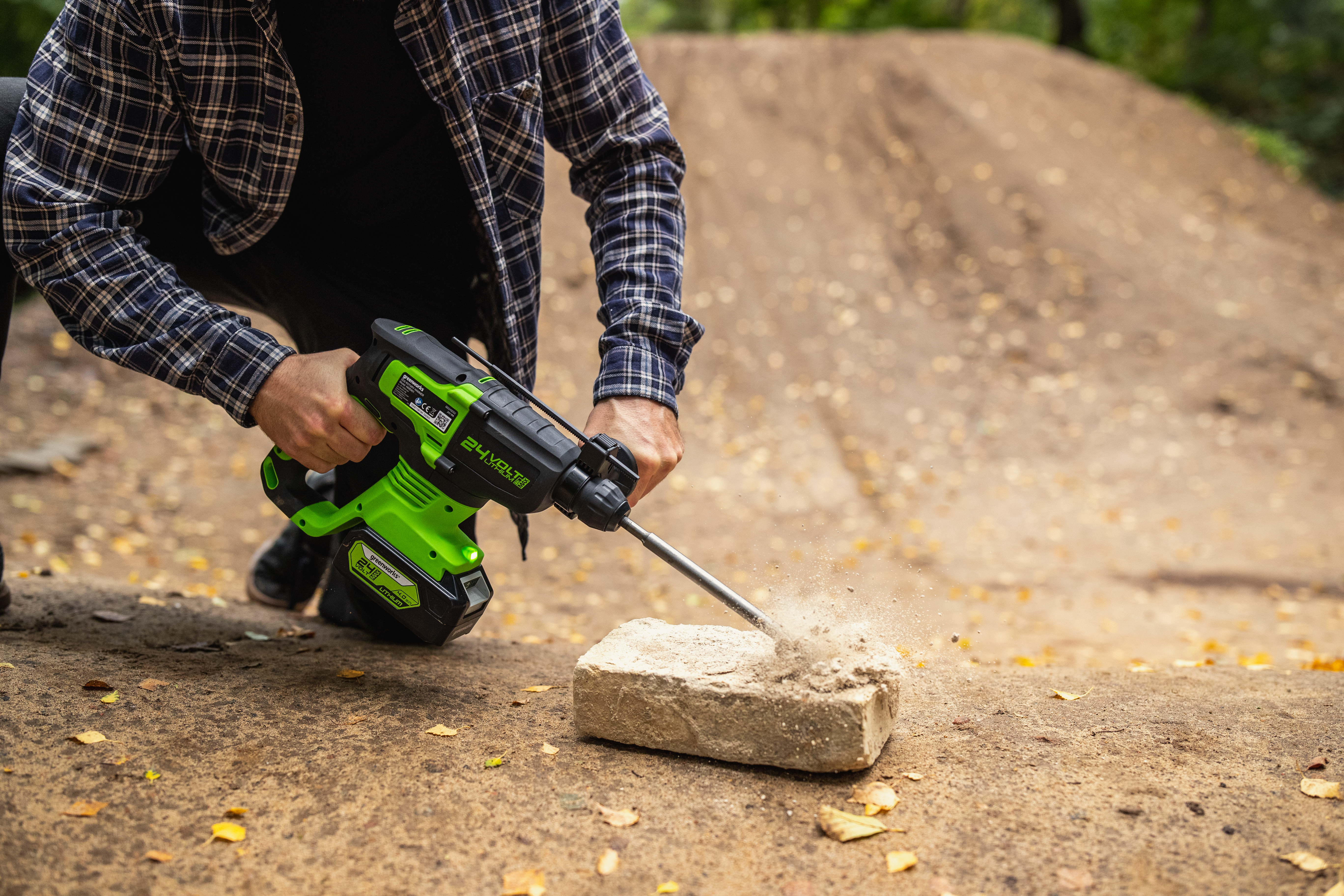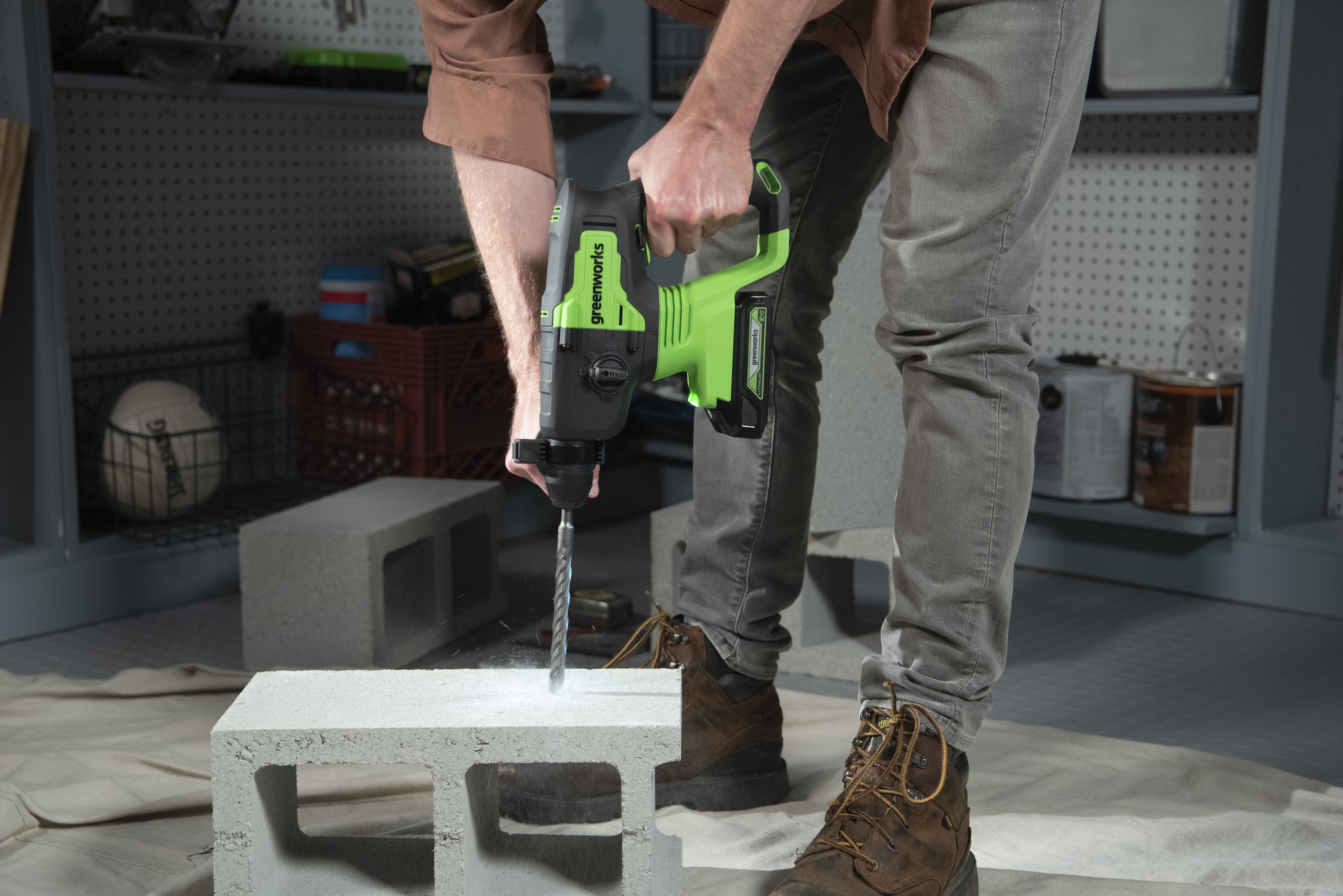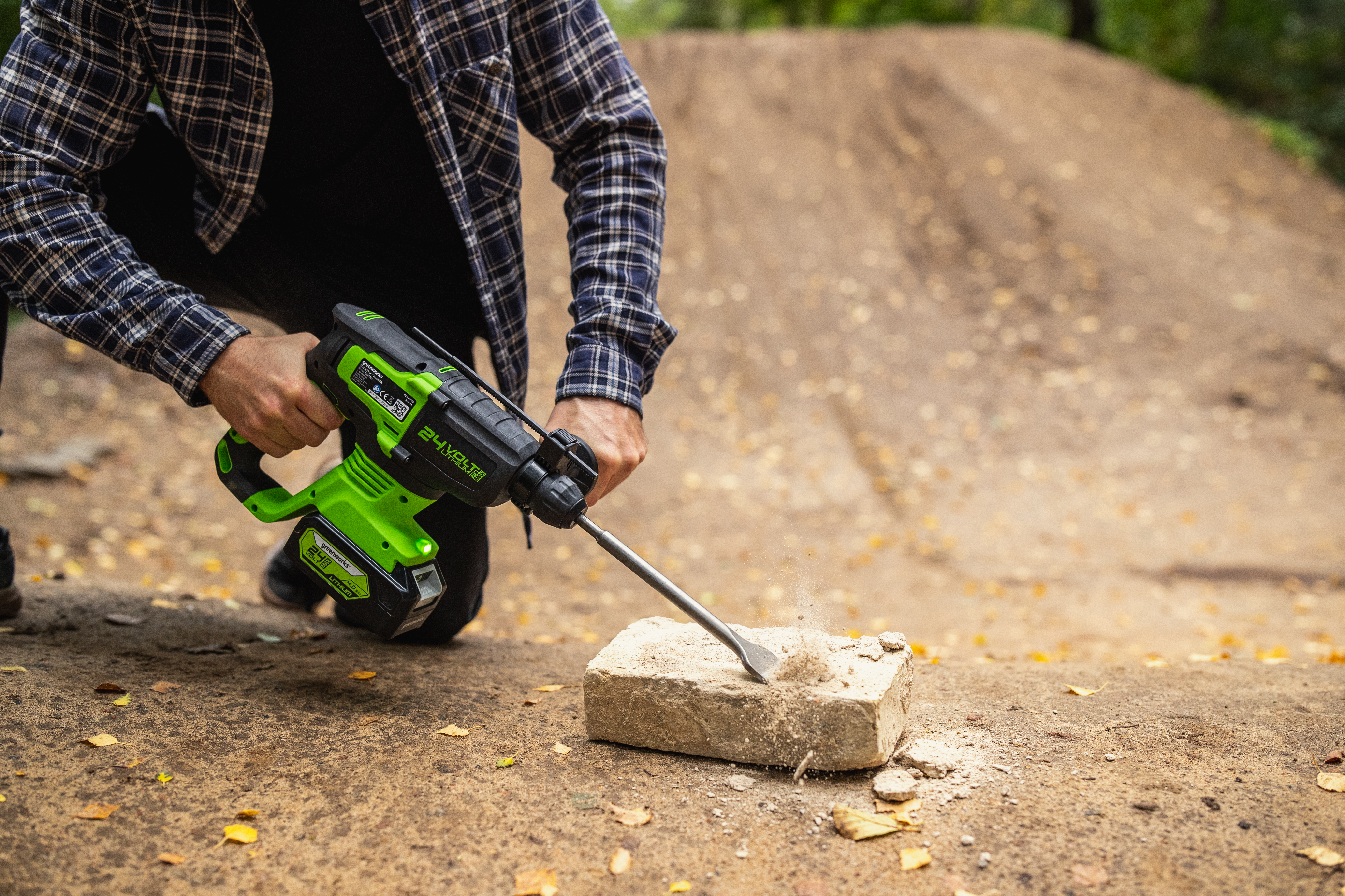 Перфоратор аккумуляторный бесщеточный Greenworks 2 ДЖ, 24V - прекрасный инструмент для проведения строительных и ремонтных работ для дома и дачи . Незаменим в местах, где отсутствует источник питания (розетка) или доступ к нему затруднен.