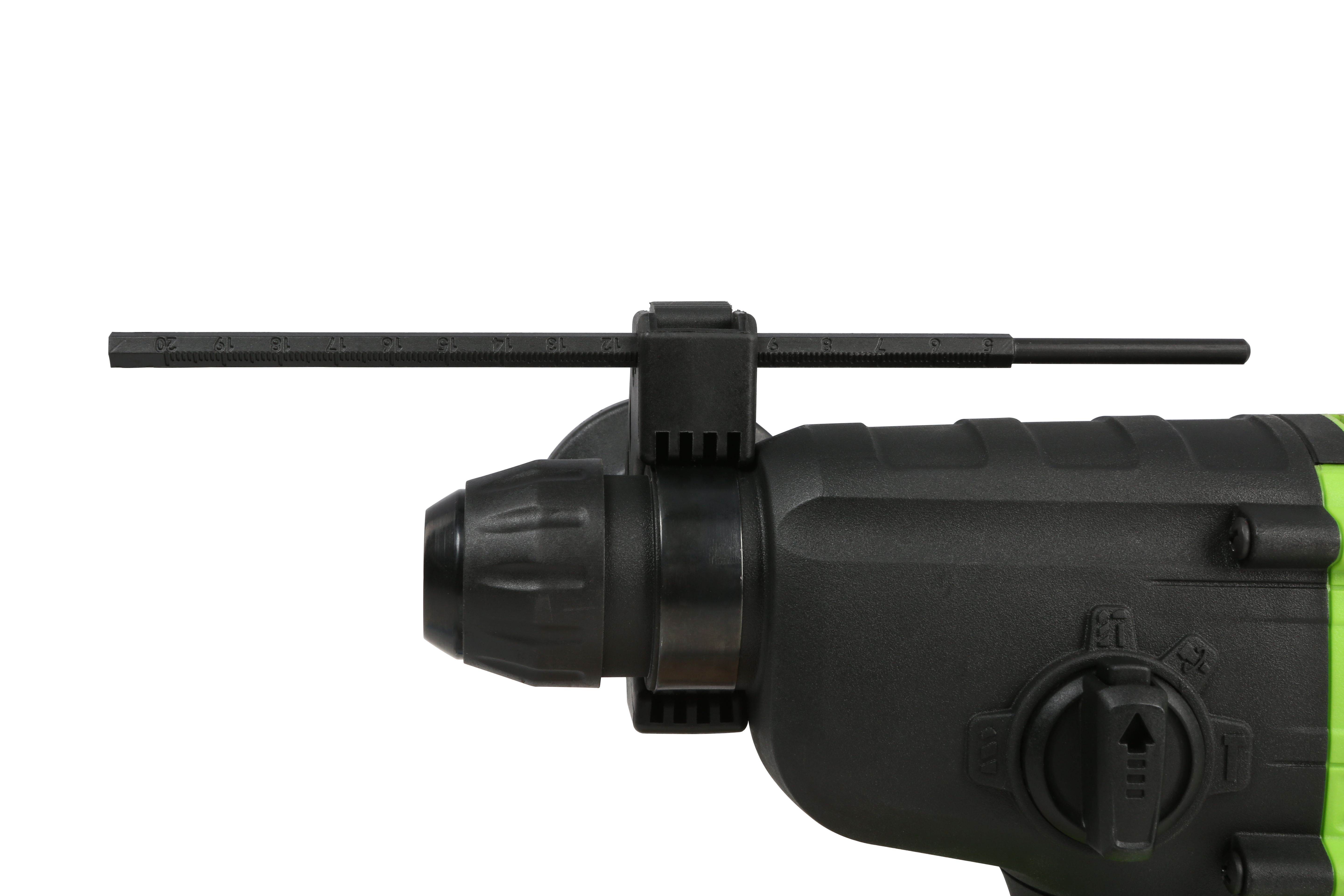 Конструкция штатного патрона перфоратора позволяет производить быструю установку и извлечение рабочих насадок системы SDS. Скорость вращения патрона составляет до 1000 об/минуту. Данный перфоратор обладает мощным ударным воздействием - 2 Дж, количество совершаемых ударов достигает в минуту - 4500. Данная модель может работать в режимах: сверление, сверление с ударом, долото, регулировка положения долота.