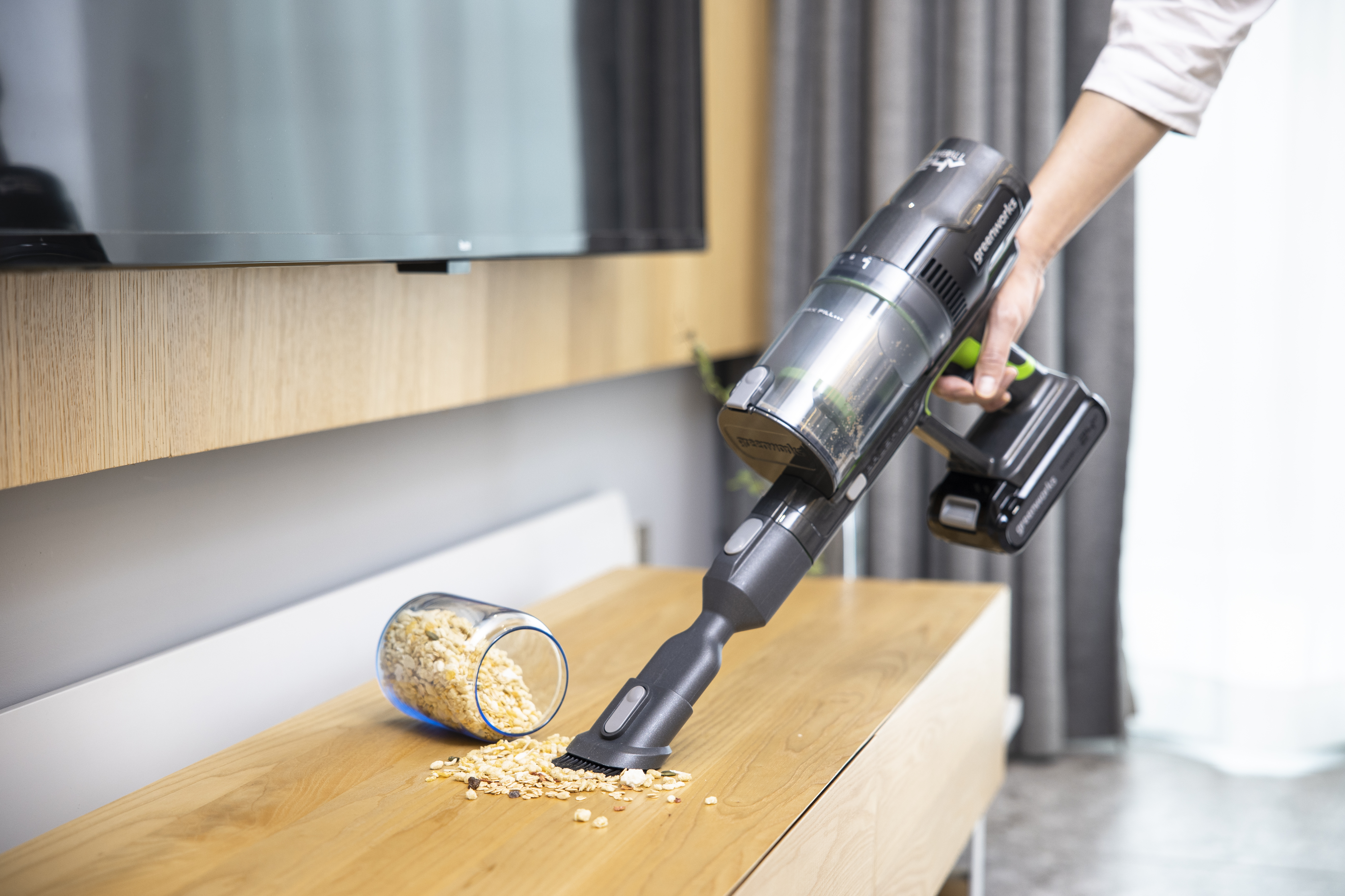Мощный БЕСПРОВОДНОЙ пылесос премиум класса. Устройство два-в-одном: вертикальный пылесос и ручной пылесос. Работа до 45 минут на одном заряде аккумулятора.