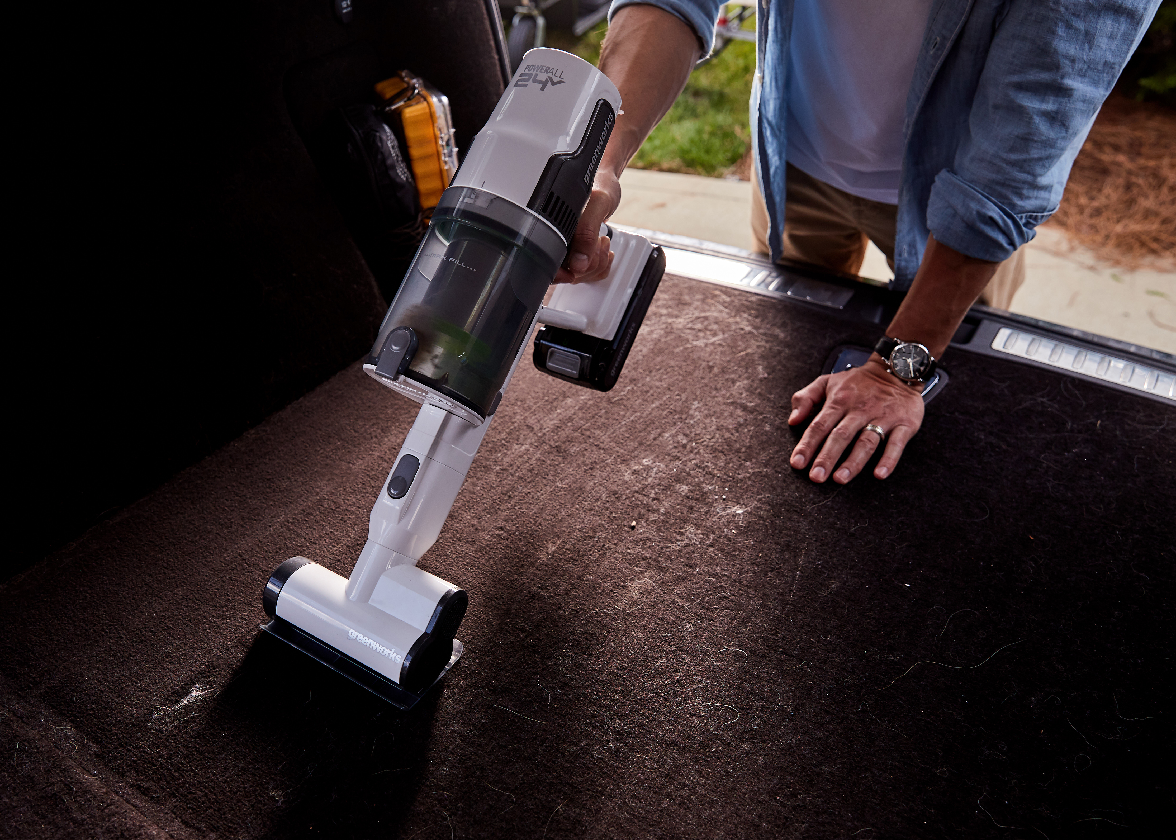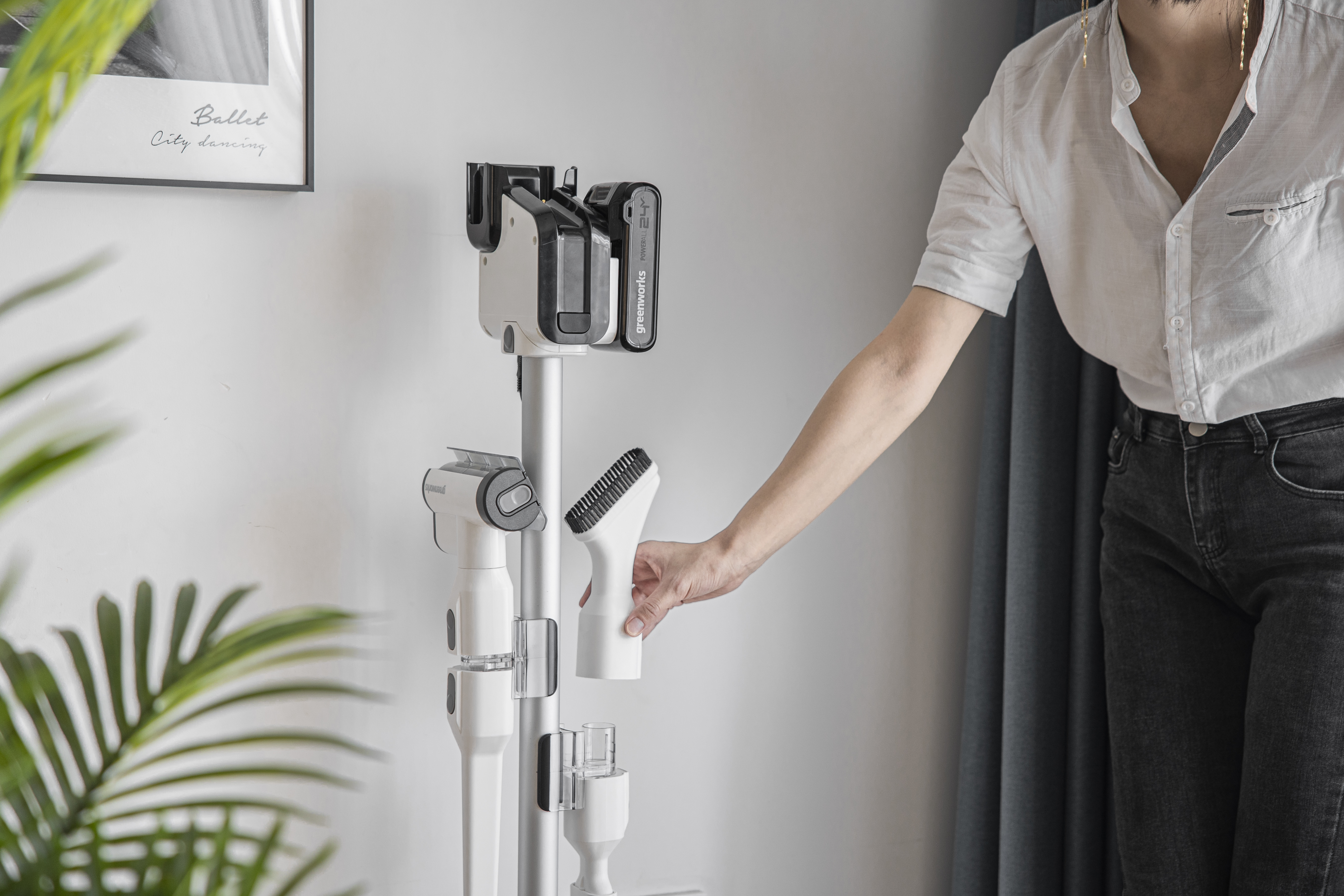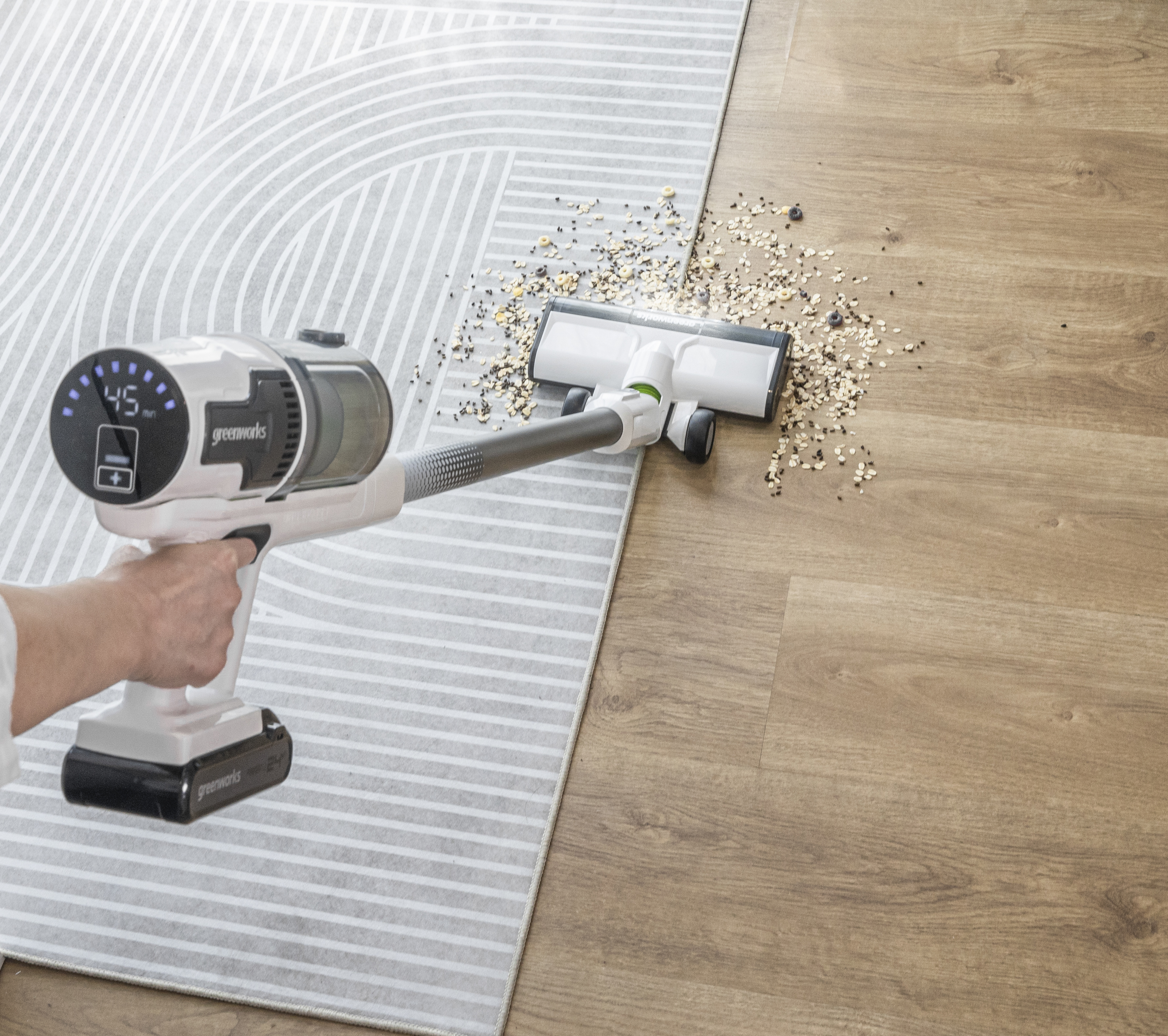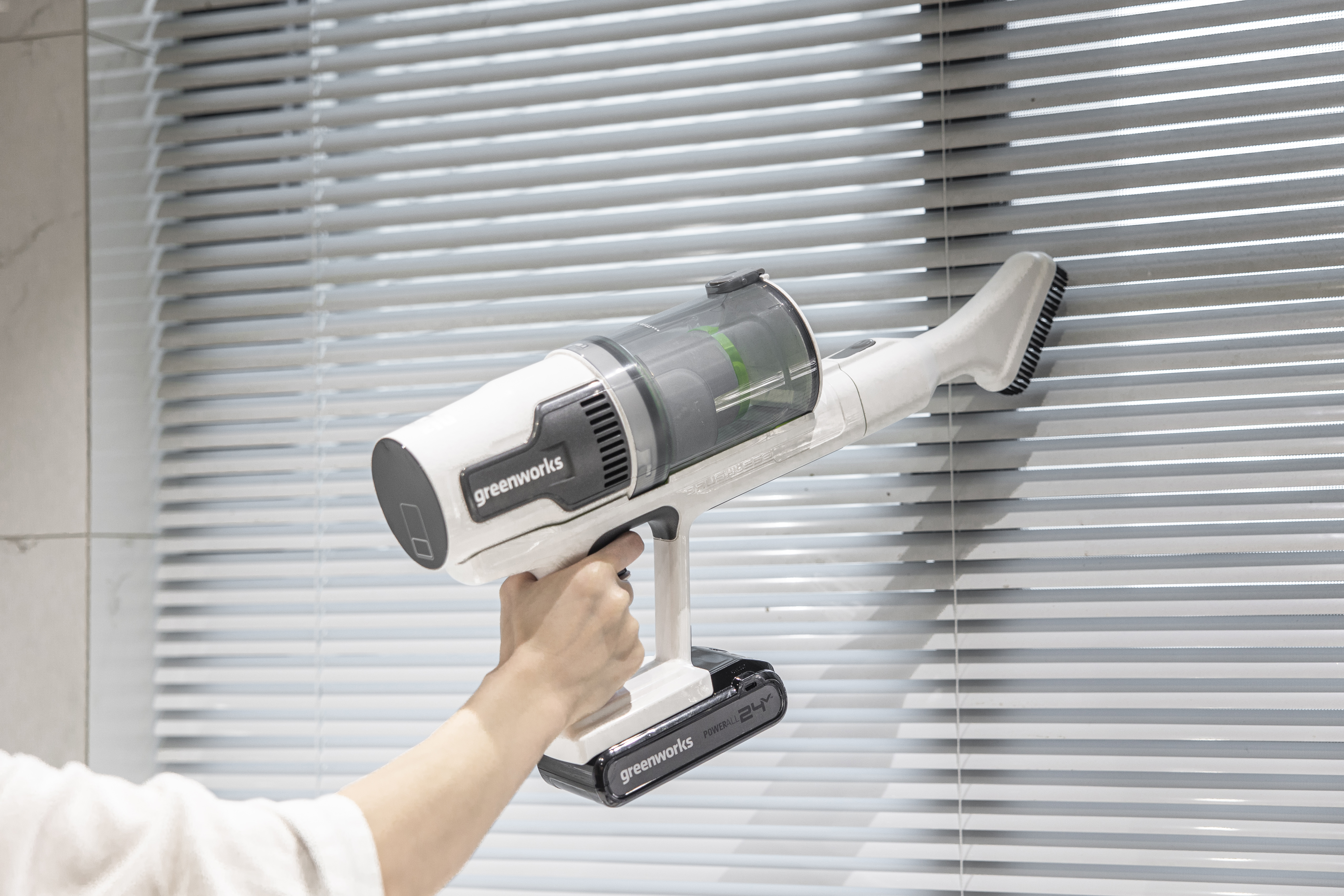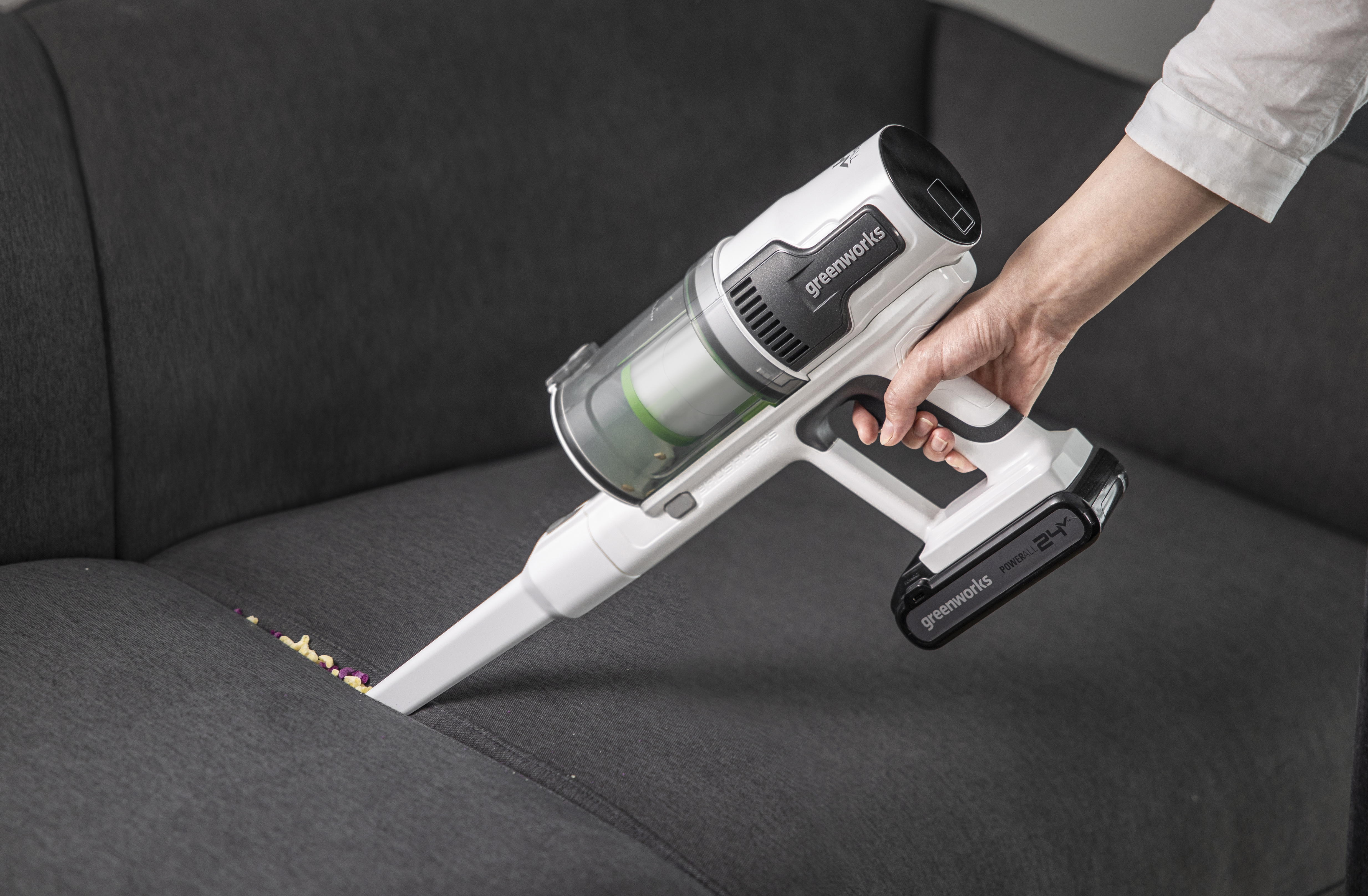 Пылесос беспроводной вертикальный аккумуляторный Greenworks 24В G24SVK4D - мощный БЕСПРОВОДНОЙ пылесос премиум класса. Устройство два-в-одном: вертикальный пылесос и ручной пылесос. Работа до 45 минут на одном заряде аккумулятора. Быстрая заряд за 30 минут. Шесть насадок в комплекте, включая ТРИ электрощетки.