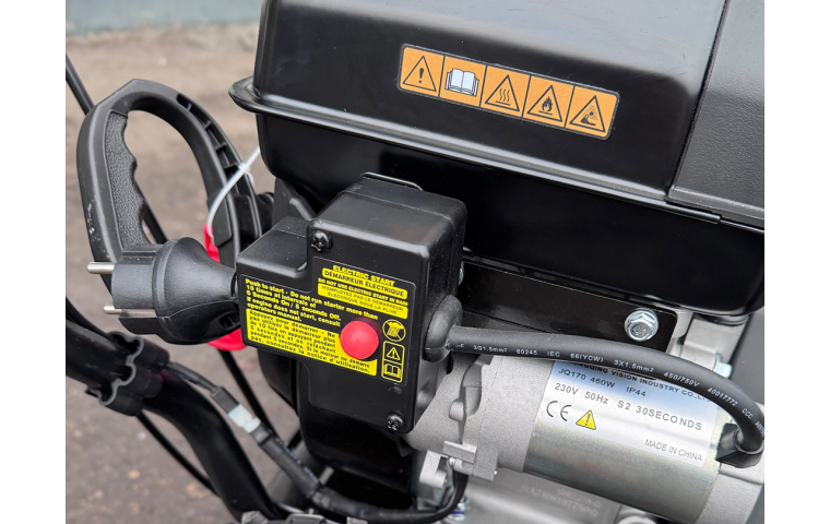 Электростартер позволяет запустить двигатель в считанные секунды не прикладывая усилий, требуется лишь наличие сети 230В, обычная розетка, которая имеется в любом гараже или на складе торгового центра.