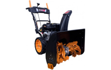 Двухступенчатая система захвата и подачи обеспечивает дальность выброса снега до 12 метров. Специализированный зимний двигатель рабочим 224сс гарантирует запуск и беспроблемную работу при морозах до –30 °С. Также, для комфортной продолжительной работы на морозе, предусмотрен подогрев ручек оператора и фара.