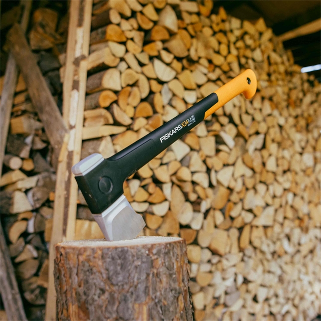 Топор-колун FISKARS X24 M Splitting (1069106) идеально подходит для раскалывания поленьев среднего размера диаметром 20-30 см.