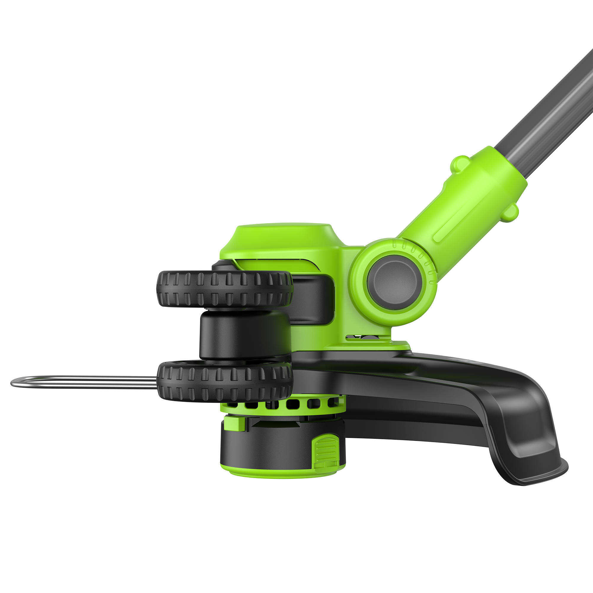 В режиме подрезки кромок режущая часть поворачивается вместе с нижней частью штанги и устанавливается вертикально, а расположенные на ней колеса предохраняют инструмент от касания земли. Кромка вашего газона всегда будет ровной и аккуратной.