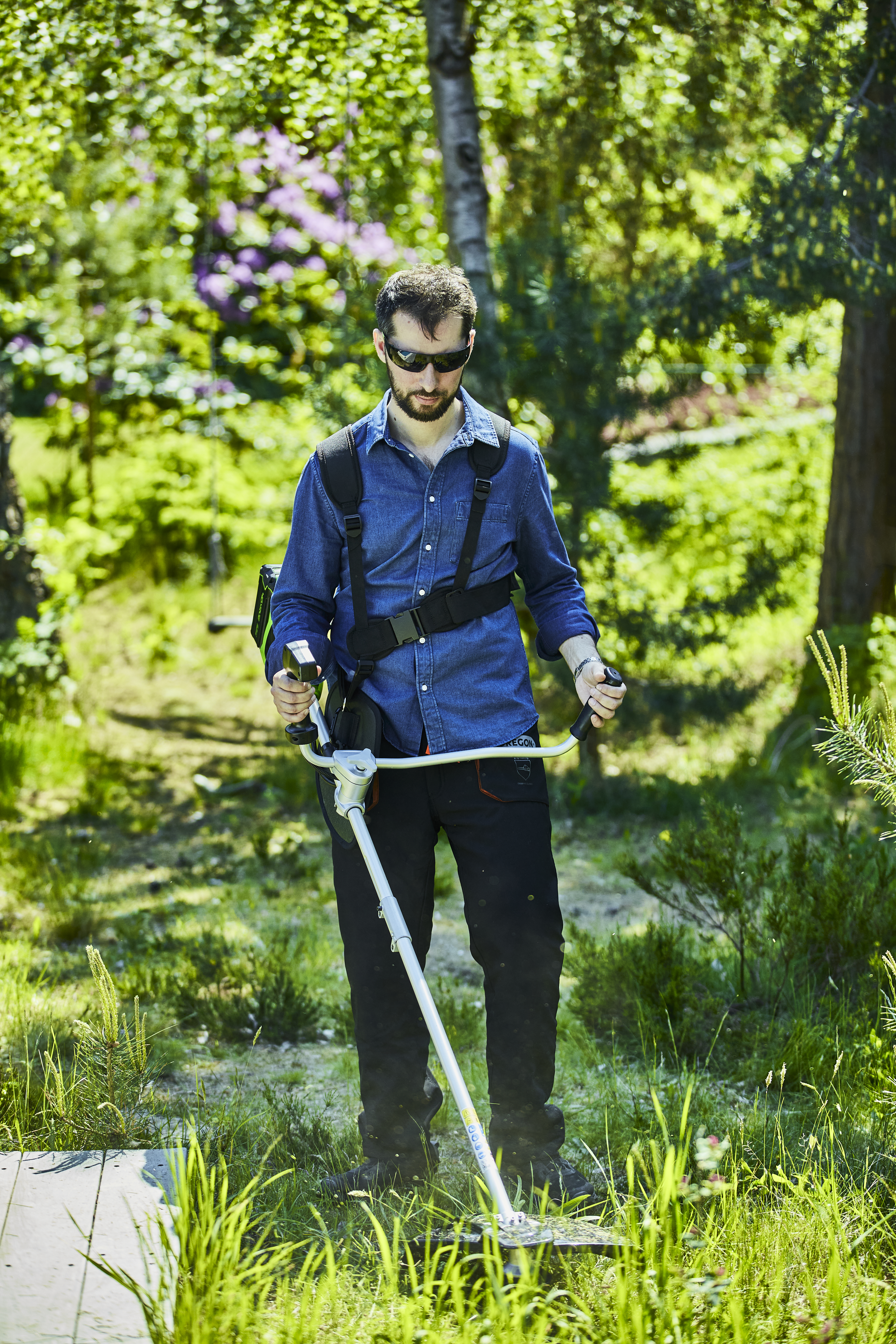 Это полупрофессиональный триммер, который отлично подойдет для ведения дачного хозяйства. Модель оснащена надежным бесщеточным двигателем DigiPro с внешним ротором, сопоставимым по мощности с бензиновыми аналогами, при этом он абсолютно экологичен, имеет высокий крутящий момент, низкий уровень шума и вибраций, а так же прост в эксплуатации. Включение триммера производится одной кнопкой, основное применение - подрезка травы в труднодоступных для газонокосилки местах, а также подрезка кустарника. Эта модель имеет наплечный ремень, а также эргономичную велосипедную рукоятку. Долгое автономное время работы (до 40 минут от 4 А*час батареи) и отсутствие необходимости использовать бензин и масло, независимость от электрической розетки - вот ключевые преимущества этого триммера.