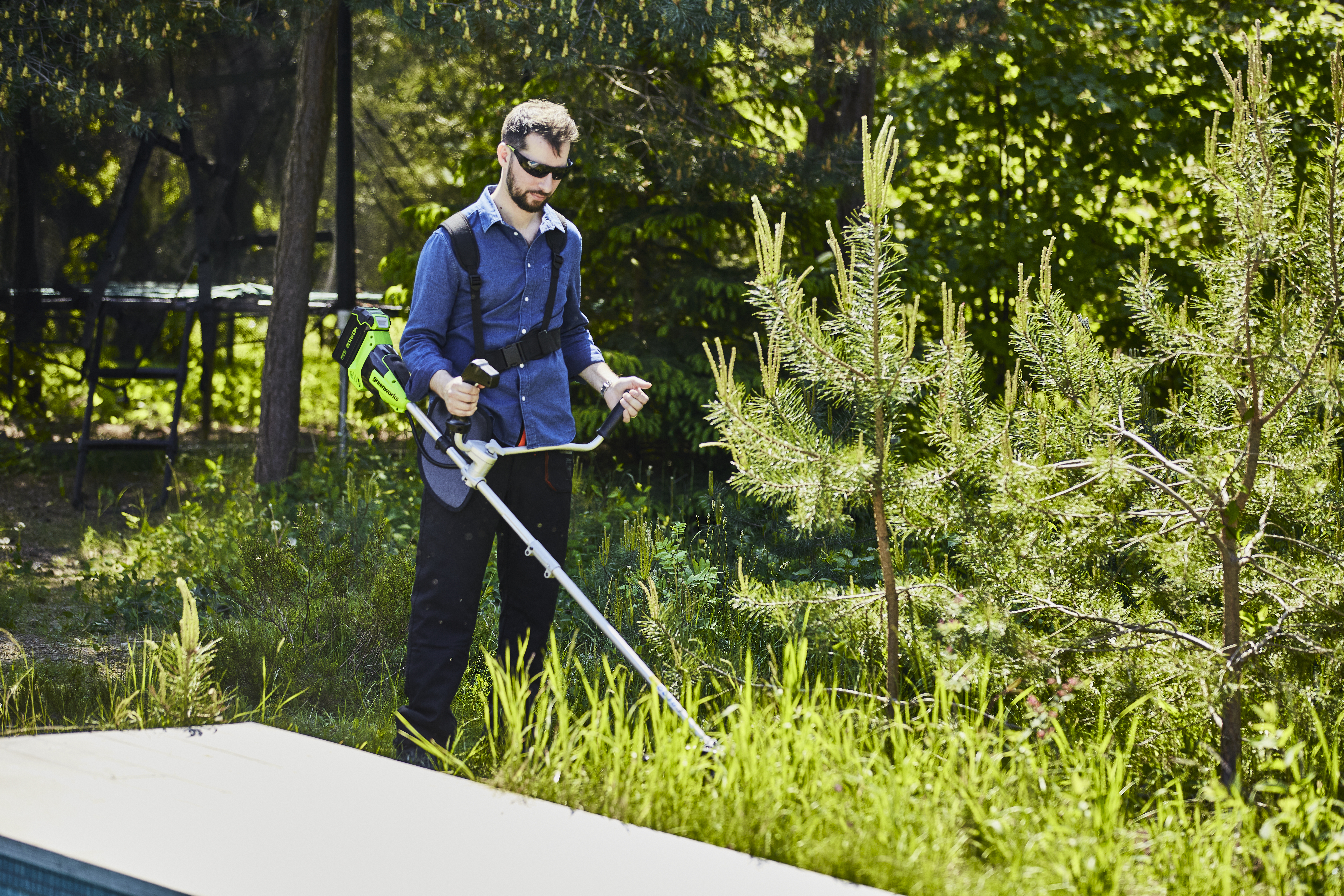 Триммер аккумуляторный Greenworks - отличная замена электро или бензиновому триммеру, он с легкостью справиться с высокой травой, а благодаря режущему диску (в комплекте) можно резать крупный кустарник.