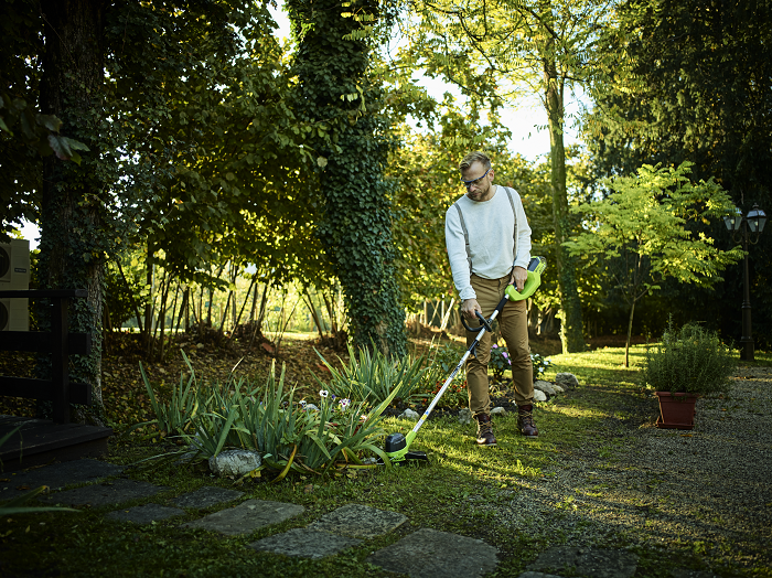 Это полупрофессиональный бесщеточный триммер, который отлично подойдет для ведения дачного хозяйства. Модель оснащена надежным бесщеточным двигателем DigiPro, сопоставимым по мощности с бензиновыми аналогами, при этом он абсолютно экологичен, имеет высокий крутящий момент, низкий уровень шума и вибраций, а так же прост в эксплуатации. Включение триммера производится одной кнопкой, основное применение - подрезка травы в труднодоступных для газонокосилки местах, а также подрезка кустарника. Долгое автономное время работы (до 40 минут от 4 Ач батареи) и отсутствие необходимости использовать бензин и масло, переносить за собой провод боясь его порезать - вот ключевые преимущества этого триммера. Данная модель оснащена предохранителем от случайного включения и защитным кожухом режущей части. Для долговечной работы двигатель имеет защиту от перегрузки, вал между двигателем и режущей частью - прямой и выполнен из стали.