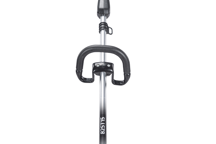 Компактный двигатель мощностью 1,5КВт находится внизу и имеет прямой привод на головку триммера. Такая конструкция без передаточного вала надежнее и легче − вес триммера всего 4,25 кг. Воздух для охлаждения двигателя поступает сверху – он засасывается через отверстия в штанге, это позволяет косить без риска попадания частиц травы в вентиляционные отверстия.