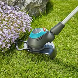 Головка устанавливается в рабочее положение под углом 0, 10 или 60 градусов. Таким образом, можно легко добраться даже до труднодоступных мест, например под садовой скамейкой, столом или батутом.