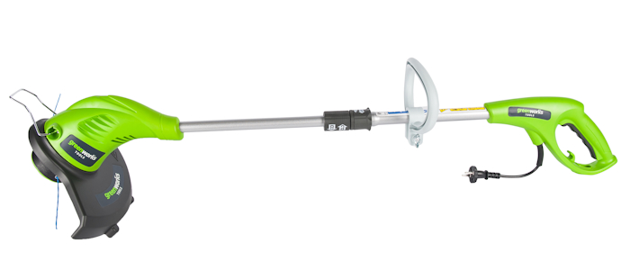 Триммер электрический Greenworks - сетевой тример мощностью 500W. Он предназначен для кошения травы и мягкой поросли в труднодоступных местах.