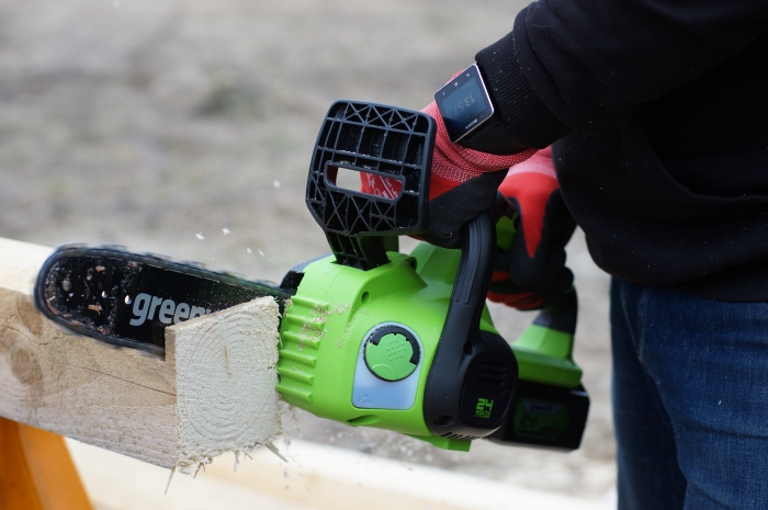 Цепная аккумуляторная пила Greenworks, 24V - небольшая, легкая садовая пила.