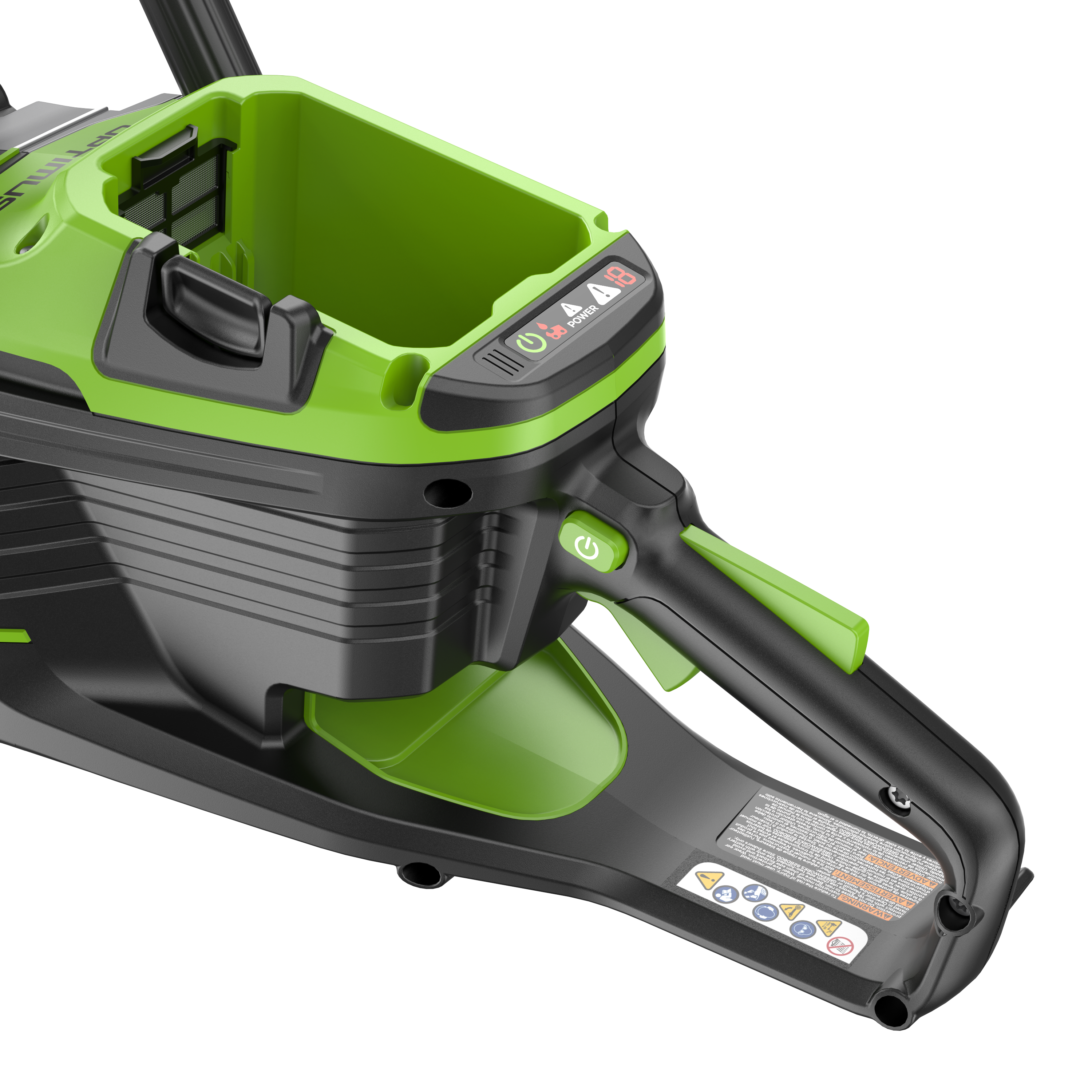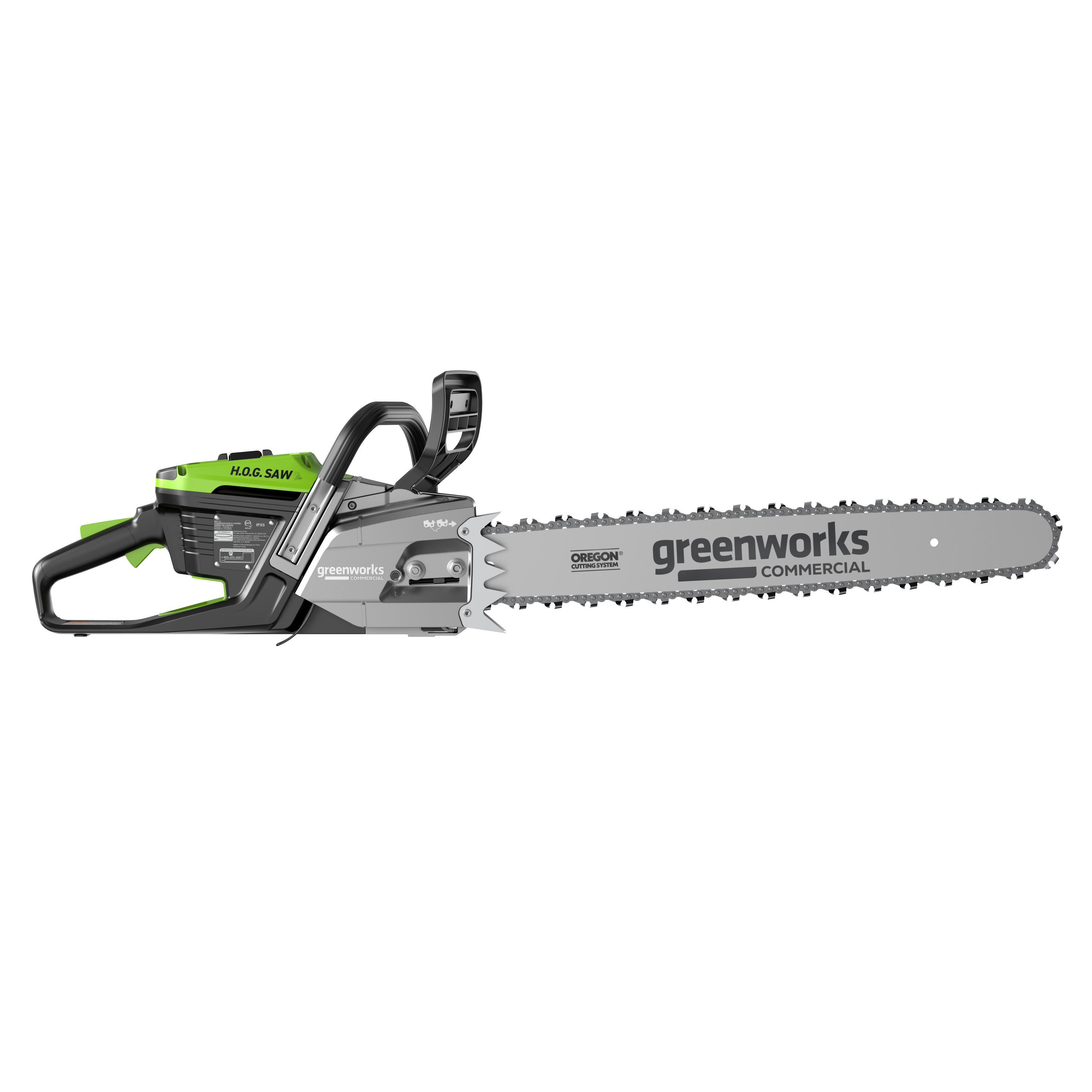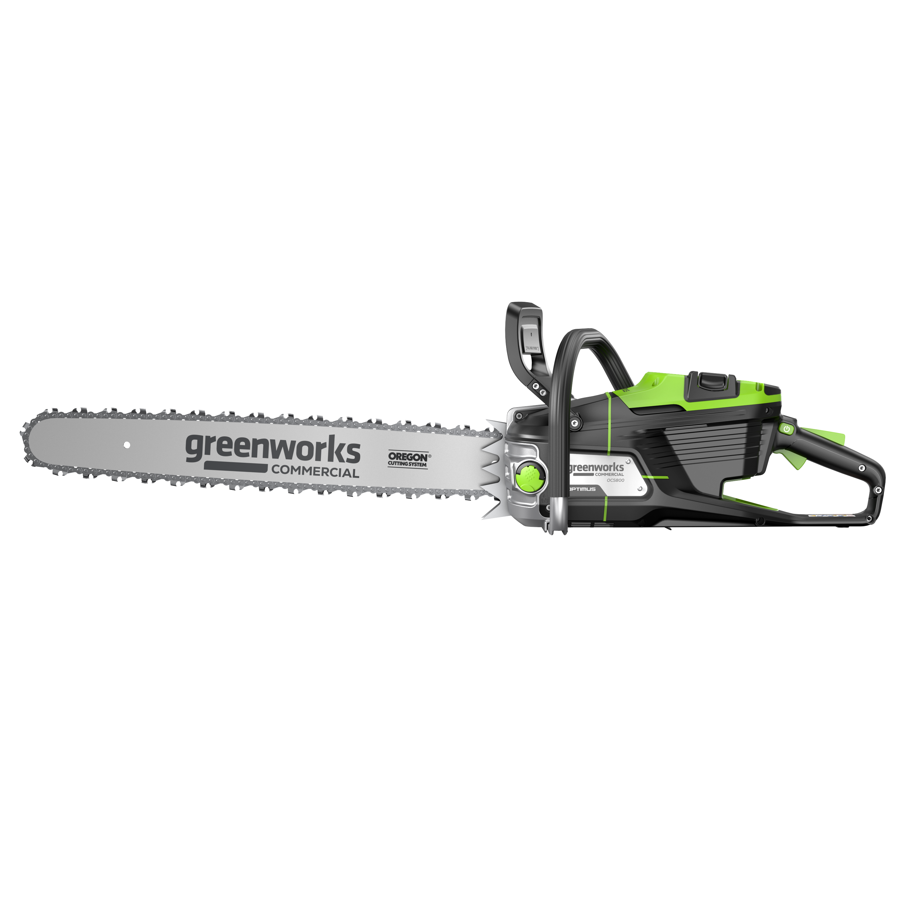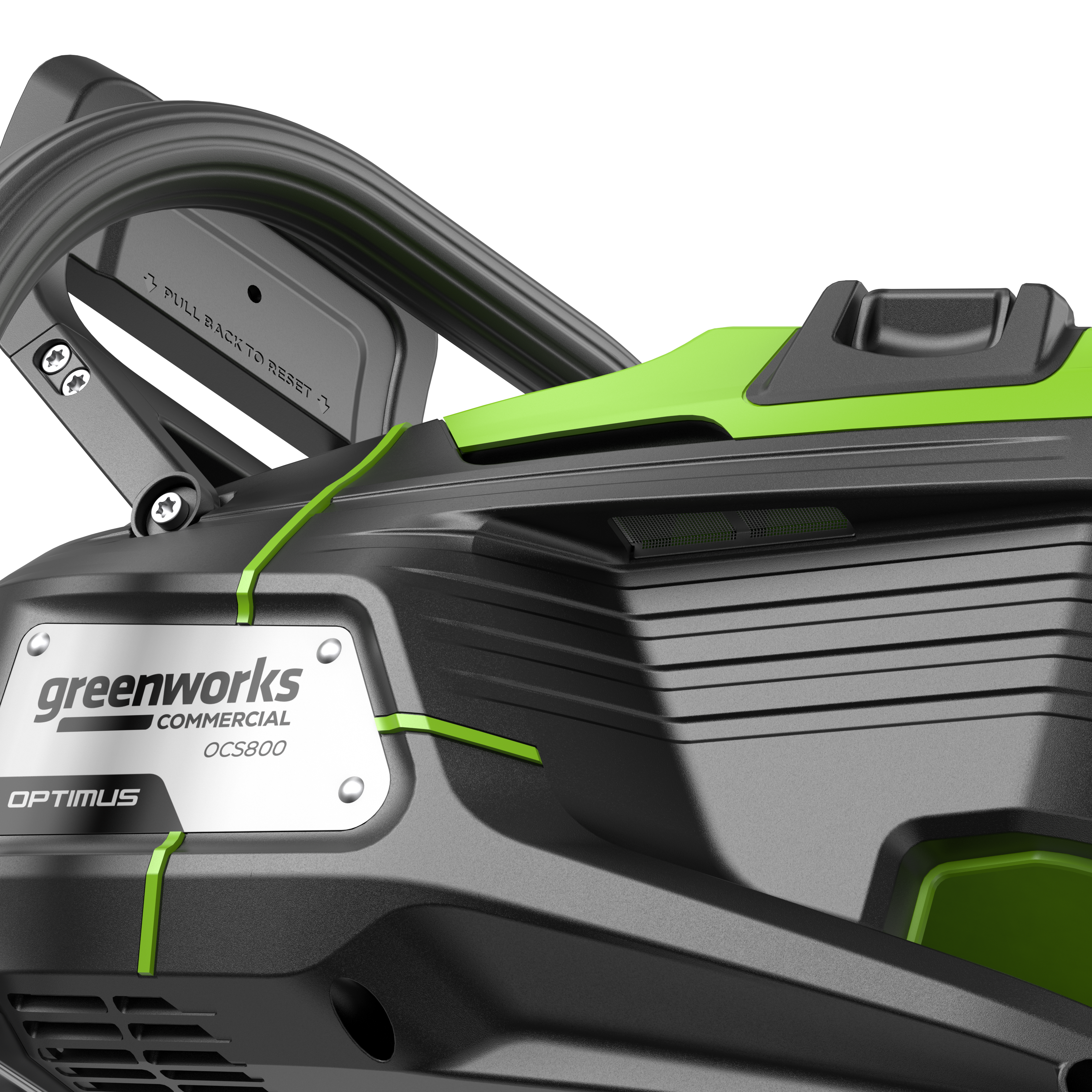 Цепная пила аккумуляторная Greenworks OCS800, из линейки техники 82V Commercial — профессиональная цепная пила для валки и раскряжёвки деревьев.