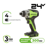 Винтоверт ударный аккумуляторный Greenworks GD24ID3 (24В, 1x4Ач и ЗУ) 3802807CUB