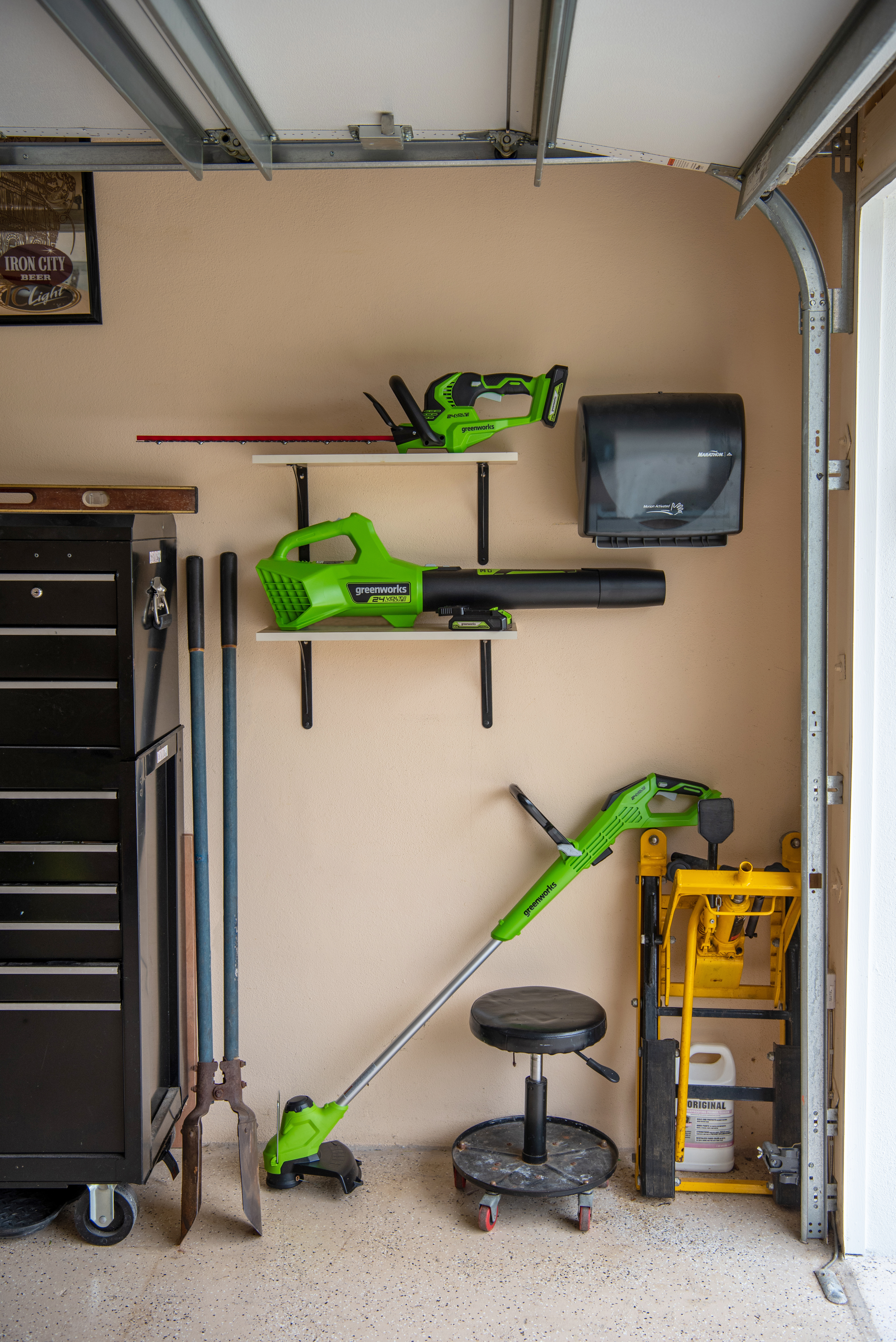 Работает от Li-Ion аккумулятора 24V, совместимого с 70 инструментами из линейки Greenworks 24V.